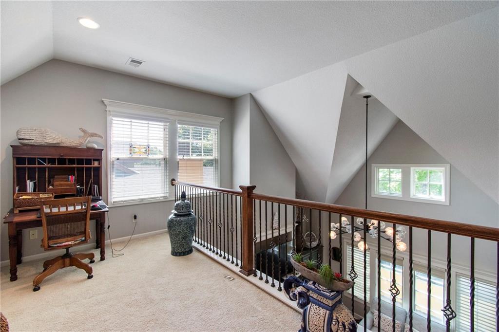 Discover this stunning villa nestled in the coveted Shoal Creek Valley - The Village, where luxury meets convenience just steps from the country club and local amenities. This meticulously maintained property welcomes you with an impressive great room featuring dramatic soaring ceilings, a warm fireplace, and elegant hardwood flooring that flows throughout the main level. The heart of the home showcases a chef-inspired eat-in kitchen equipped with premium stainless steel appliances, expertly crafted custom cabinetry, and a convenient breakfast bar perfect for casual dining. Retreat to the luxurious master suite, complete with a spacious walk-in closet and spa-like ensuite bathroom featuring dual vanities, an upgraded shower, and a relaxing jetted tub. The finished basement expands your living space with an expansive recreation room, a third bedroom, and a full bathroom, while the upper-level loft provides the perfect sanctuary for a home office or quiet sitting area. Located within the prestigious Liberty School District, this exceptional property combines elegant living with practical convenience and hassle-free maintenance. Monthly HOA fee of $293 covers lawn care, snow removal, exterior building maintenance, exterior painting and roof repair.
