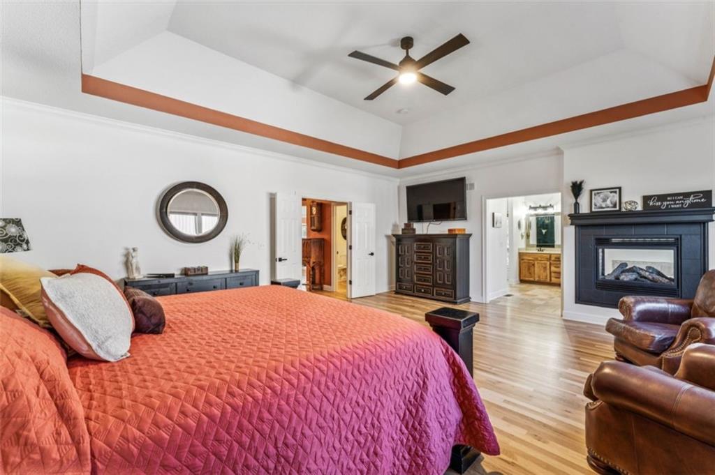 Better than new construction with many items you have to pay additionally for. Move-in ready and beautifully updated! This stunning reverse 1.5-story home is one of the largest in the subdivision, offering 4 bedrooms, 3.5 baths, and a 3-car garage with a convenient John Deere room. The open layout, gorgeous hardwood floors, and high-quality finishes make this home perfect for families, pet owners, or anyone seeking modern comfort and easy living. Recent updates (2024–2025) include a new roof and gutters, professional interior and exterior paint, new Energy Star dishwasher, new water heater, and professionally tinted windows for enhanced energy efficiency. Additional upgrades include custom window coverings, new storm doors, updated light fixtures, switches, outlets, and cabinet hardware, new toilets, and a new 5-ft steel fence with 3 gates—ideal for kids and pets. The garage door openers feature cameras, keypads, and FOBs for added convenience and security. Enjoy a spacious kitchen with a Bluetooth-enabled double oven with convection, large walk-in pantry, and plenty of cabinet space—perfect for entertaining and everyday cooking. Carpet was replaced in 2023, and both the HVAC and sprinkler system were serviced in 2025. The beautifully landscaped yard features two producing peach trees, mature shade trees, and peaceful surroundings. The neighborhood offers walking and biking trails that connect to scenic Lake Remembrance. All this with no HOA! One of the largest and most well-maintained homes in the area—truly move-in ready and waiting for you!