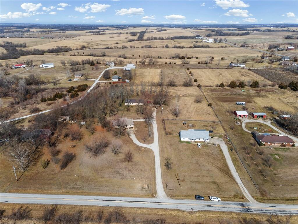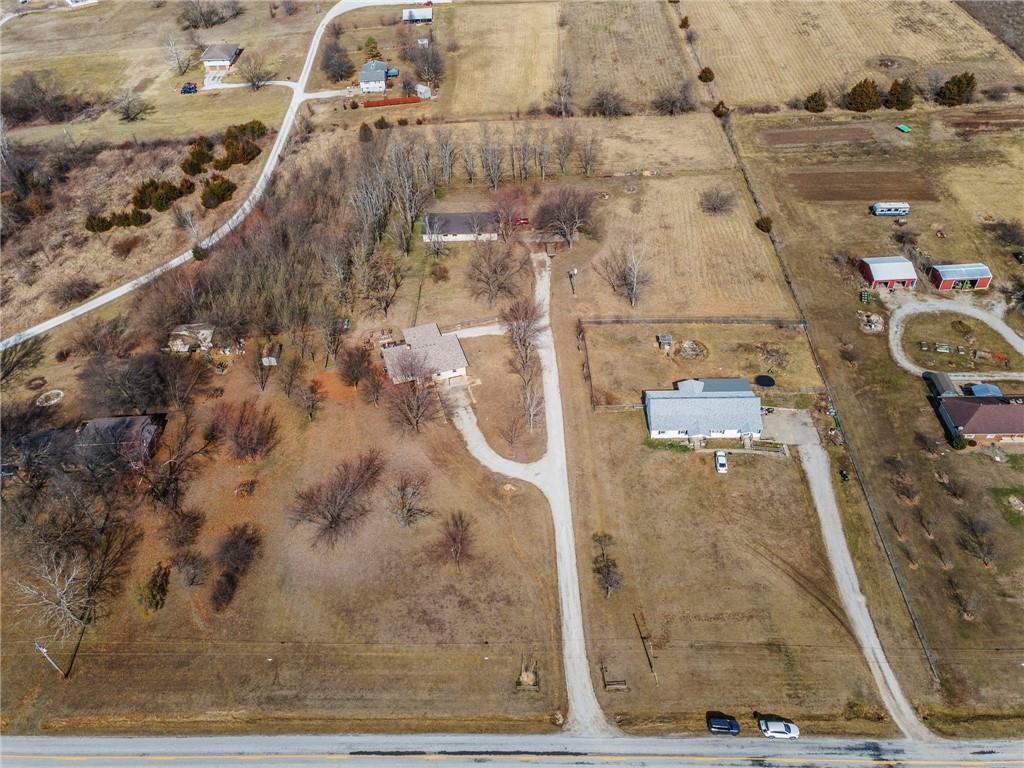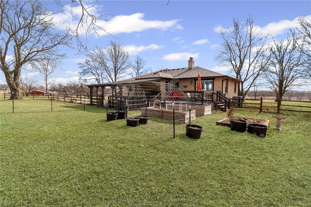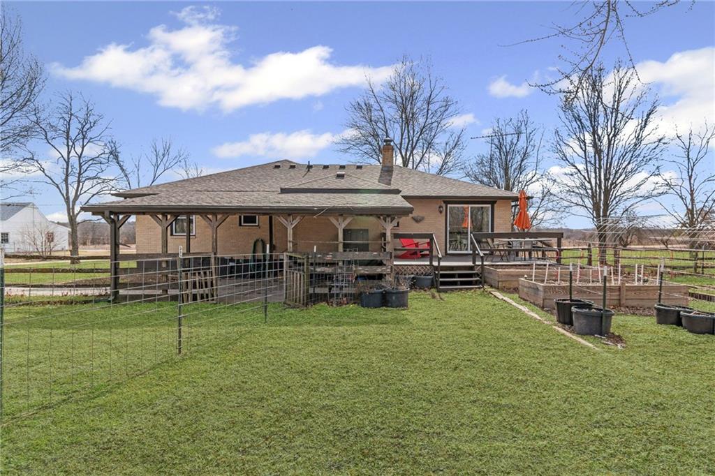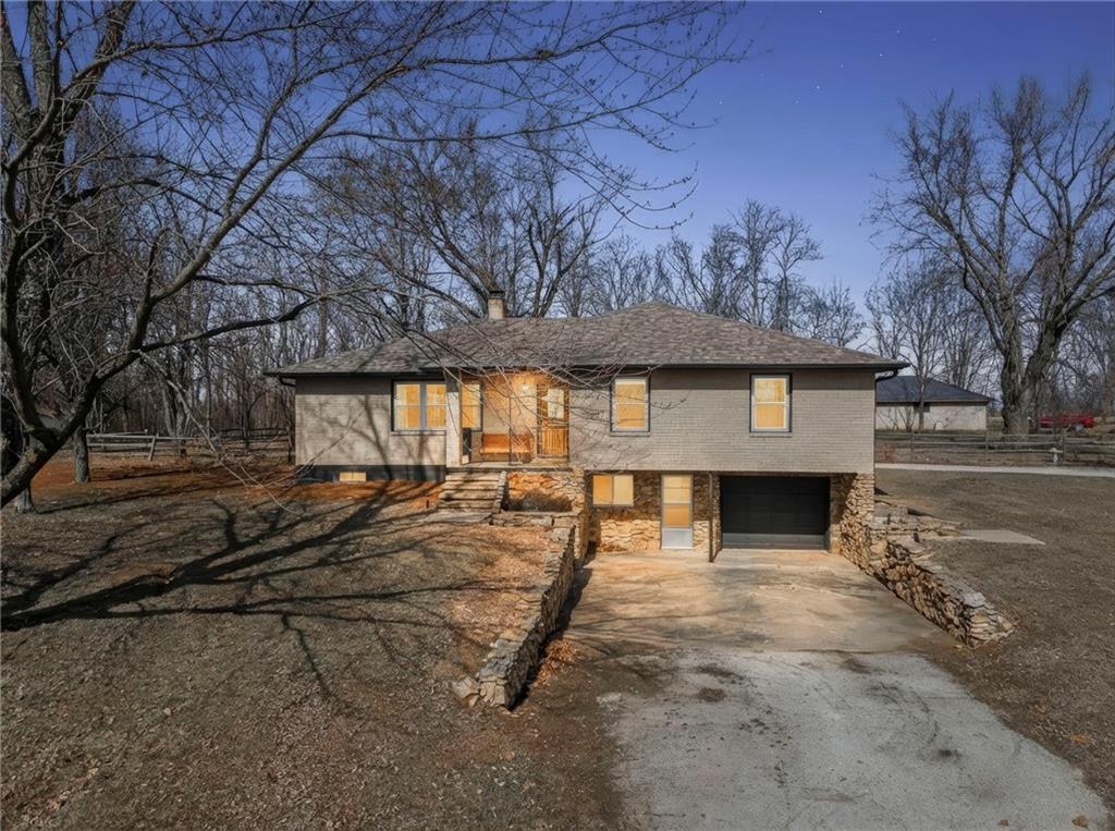 More than a renovation — this is a property built around how people actually want to live. Located just north of Clinton and about 20 minutes south of Warrensburg, this 3 bedroom, 2 bath home sits on 4.3 acres on blacktop and offers space, privacy and flexibility that’s hard to recreate today. Major improvements have already been completed, including a new house roof, septic system, gutters and drainage corrections. Inside, the layout provides both connection and separation with a private office/study off the primary suite and a lower-level bedroom with exterior entrance, closet and egress window, creating ideal separate living quarters potential for multigenerational living, guests, private work-from-home space, or possible short-term rental use. The kitchen was completely remodeled with custom-built cabinetry, granite countertops and extensive storage. The primary bath features hand-selected Portuguese tile, and the home is finished with acacia stained wood interior doors, updated flooring, new trim and fresh paint throughout — thoughtful finishes and craftsmanship carry through every room. The grounds are where the property truly stands apart. Japanese cherry trees, roses, irises and lilies surround the home, while raised garden beds and arches are already in place for spring planting. Grow heirloom vegetables, berries and herbs, or harvest from the orchard with apple, crab apple, plum, peach and nectarine trees just behind the shop. Mostly fenced pastures provide room for animals with multiple separate enclosures. Previous owners kept horses here and there are new piers ready for stalls outside the shop inside the north pasture if desired! The large shop with metal NEW roof offers exceptional space for equipment, projects, storage or business use and previously served as a beekeeper’s haven. Has Loading dock, concrete floors, electric, built in wench, loft for storage, & so much more! Attached garage and carport add everyday convenience.