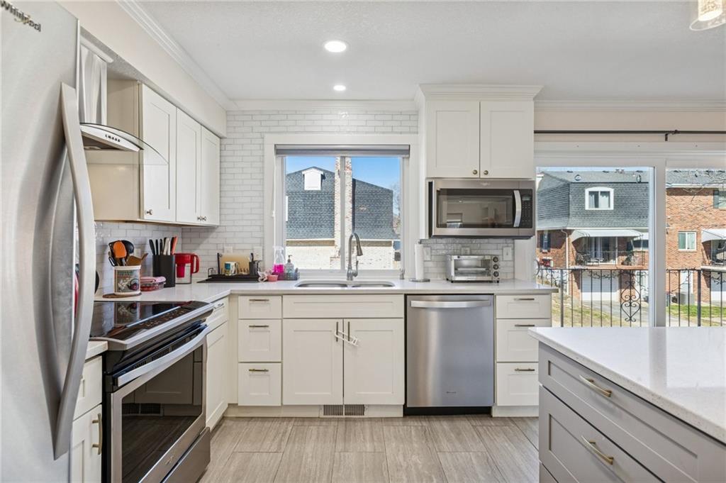 One of Greenbrier's most exquisite high-end remodels is once again available. Stunning $85,000 renovation (in 2019 Dollars) creating a beautiful one-of-a-kind masterpiece! One of the Larger 2BR floor plans in the neighborhood. An absolute Must-See property! Everything from the paver brick front courtyard patio with custom fencing and gate, the amazing job-finished REAL hardwood flooring, to the wainscoting and built-in bookcases, to the fully torn out and rebuilt custom staircase--now featuring lower-rise steps & wider treads inlaid with hardwood flooring. Walls blown out and kitchen opened up to create a dream kitchen with wonderful open floorplan including stainless steel appliances, sparkling quartz counters, custom cabinetry and even a pot filler! New half bath on main level as well. Upstairs you will find another gorgeous, remodeled bath, two very generous-sized bedrooms with able closet space + a large hall linen closet. The lower level features a ceramic tiled family room with access to the laundry, storage and single-car attached garage with private driveway behind. Fantastic subdivision with friendly neighbors of all ages and tons of activities! So close to all that downtown Overland Park offers, including the Kansas' #1-Rated "BEST" farmer's market current being re-constructed and expanded! You must see this wonderful home before it's too late!