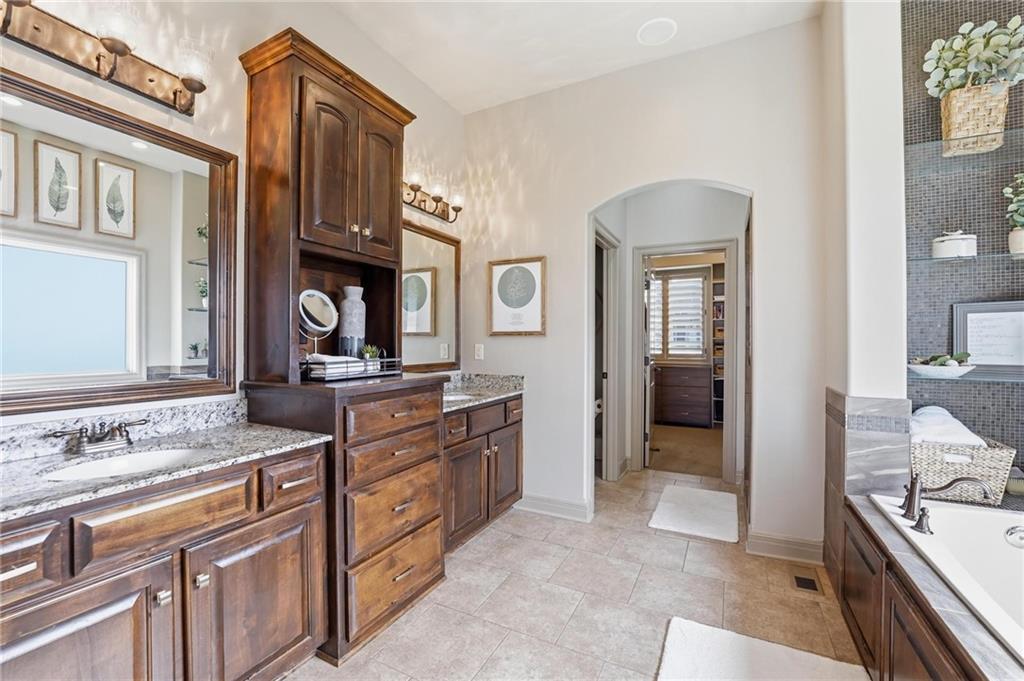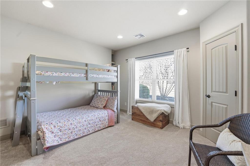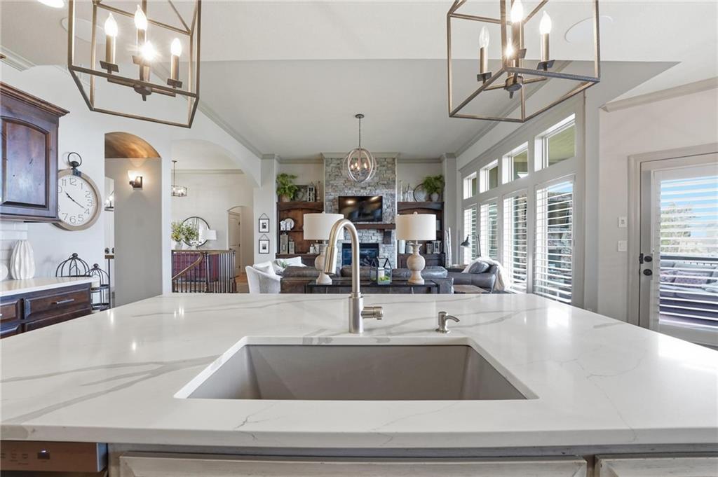 MAGNIFICENT REVERSE 1.5 ON A CUL-DE-SAC IN COLTON LAKES SOUTH IN THE AWARD-WINNING BLUE VALLEY SCHOOL DISTRICT! This stunning home perfectly blends warm, inviting contrasts with clean, modern design, all showcased in a desirable open floor plan ideal for everyday living and entertaining. Light-filled Great Room is anchored by a dramatic floor-to-ceiling stacked stone fireplace with custom built-ins—creating a striking focal point and the perfect place to gather. Chef’s kitchen is sure to impress with quartz countertops, a generous center eat-in island, walk-in pantry and stainless steel appliances, including a gas cooktop, built-in oven and microwave. An adjacent breakfast nook and formal dining room offer versatile spaces for hosting guests or enjoying cozy nights at home. Retreat to the luxurious primary suite featuring direct access to the covered deck—for your morning coffee or evening unwind. Spa-inspired en-suite boasts a double vanity, whirlpool tub, separate walk-in shower and a spacious walk-in closet with convenient in-suite laundry. Second bedroom, full bath and mudroom complete the thoughtfully designed main level. Finished walk-out lower level expands your living space with a large family room, wet bar, three additional bedrooms, two full baths and a second laundry area—ideal for guests or multi-generational living. Professionally designed landscaping creates a serene, private outdoor retreat. Enjoy time on the deck or patio, both overlooking the extra-wide, spacious lot and tree-filled greenspace. Unbeatable location just minutes from Heritage Park, the Overland Park Arboretum, Blue Hawk's shopping and dining and easy highway access. WELCOME HOME!