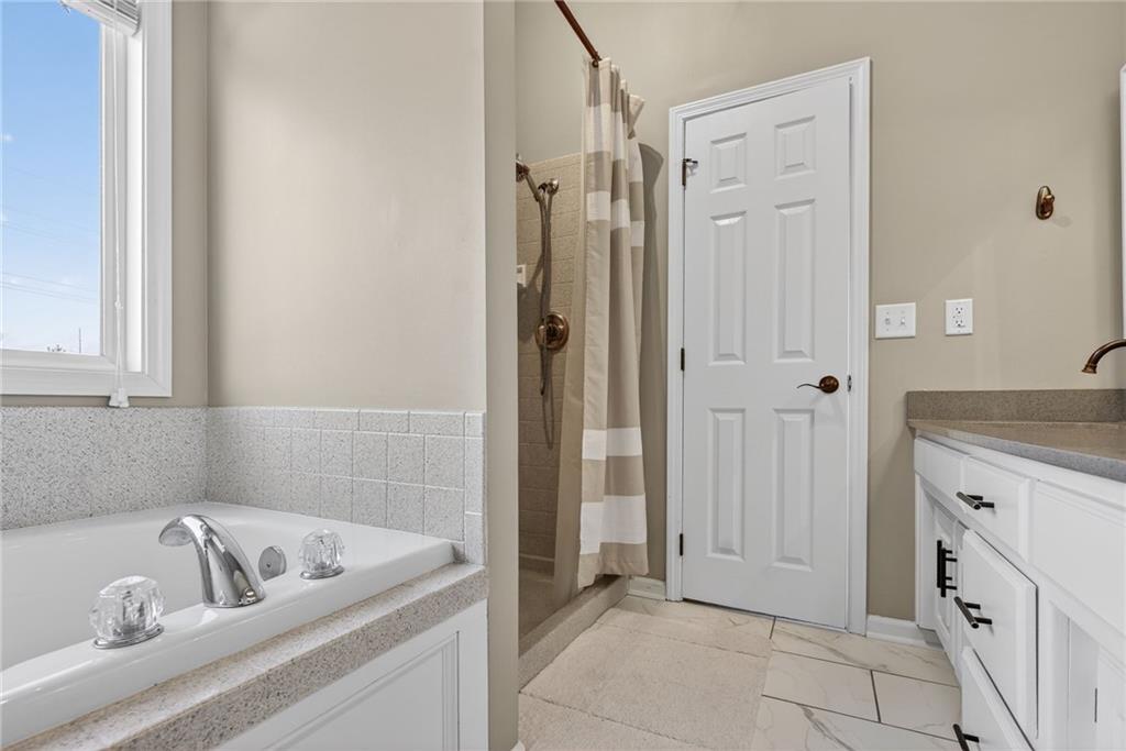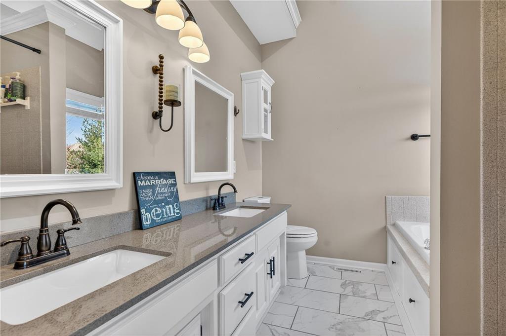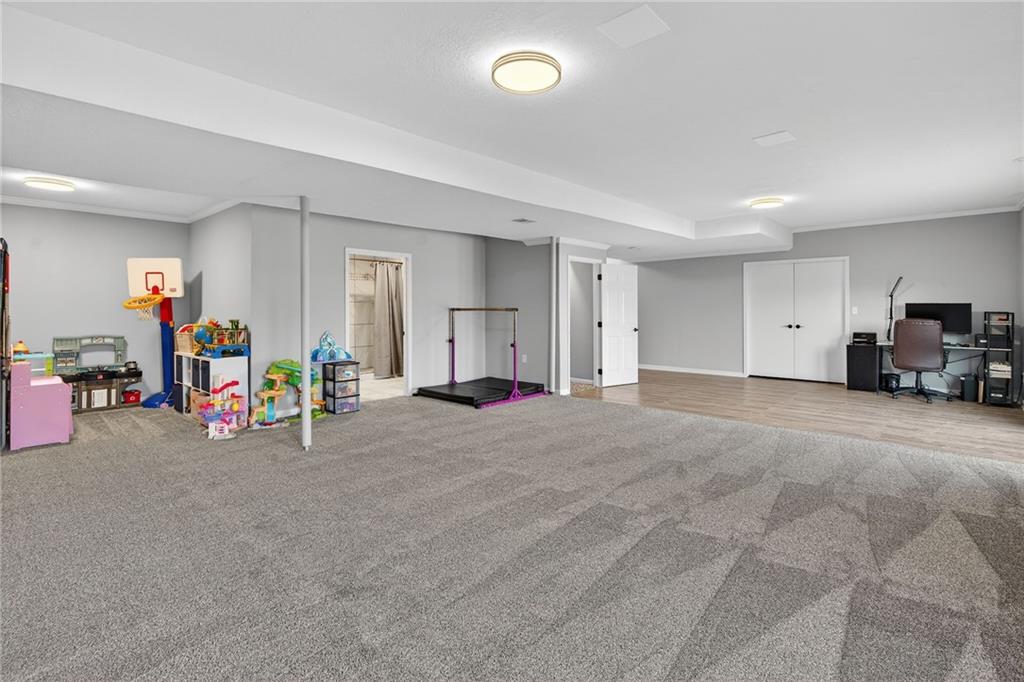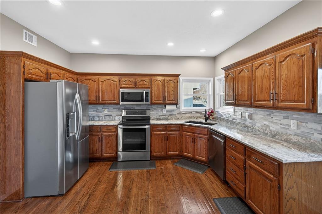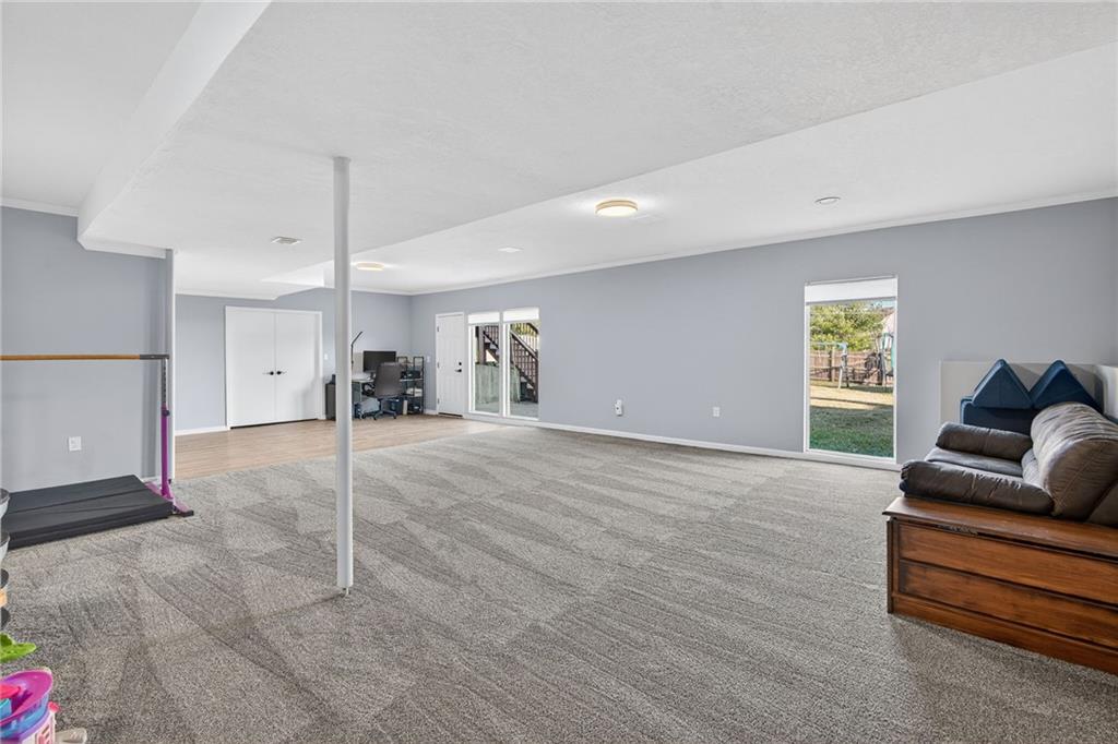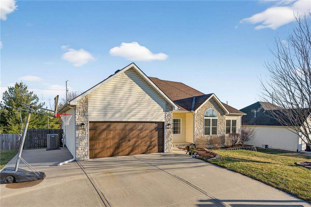 This is the one. True main floor living with 3 bedrooms and 2 bathrooms, laundry, and kitchen — all conveniently on one floor. A huge newly finished basement filled with natural light. An impossible-to-find suspended garage perfect for a gym or extra storage. Tons of parking space. And an amazing privacy-fenced backyard. From the moment you walk in, you’re greeted by a beautiful fireplace, wood floors, vaulted ceilings and an open floor plan that feels bright, airy, and welcoming. The updated kitchen flows seamlessly into the main living area, making everyday living and entertaining effortless. All three bedrooms are located on the main level, including a spacious primary suite featuring trayed ceilings, a walk-in closet, double sinks, and a relaxing jacuzzi tub — your own private retreat at the end of the day. Downstairs, the fully finished basement offers incredible flexibility with new carpet and fresh paint. Whether you need space for a media room, playroom, hobby area or hosting guests and grandkids, this level gives you room to grow without sacrificing comfort. The 20x20 suspended garage is a rare bonus — ideal for a home gym, workshop, storage, or all three. And upstairs find an epoxied garage floor that adds both durability and a clean, polished look. Step outside to a huge deck overlooking a large backyard with full privacy fencing that is perfect for entertaining, gardening, letting kids or pets play, or simply enjoying a quiet evening outdoors. With a new furnace and AC already in place, the major updates are done for you. Whether you’re looking for simplified main-level living or space to spread out and gather, this home offers the flexibility to fit every stage of life.