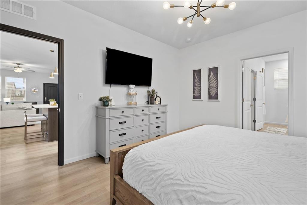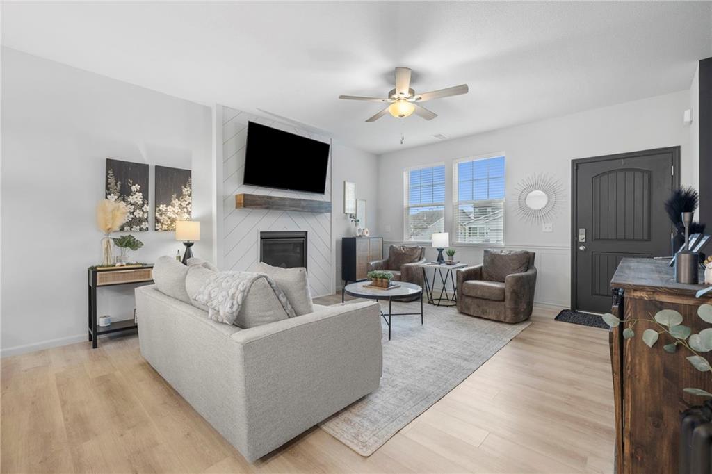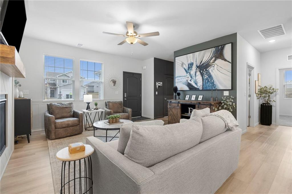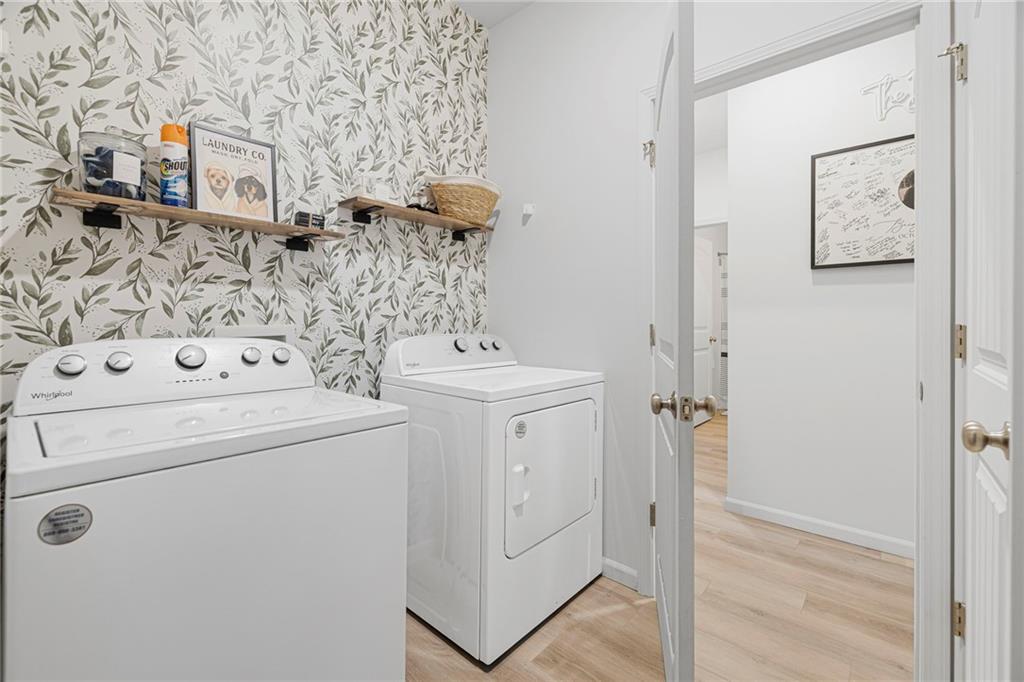 Bright, modern, and beautifully finished, this 3-bed, 2-bath ranch delivers the fresh feel of new construction—only better. Designer upgrades elevate every space, from the custom accent wall and curated lighting to the kitchen’s quartz countertops, pull-out spice rack, sleek new faucet, and updated hardware. The primary bedroom feels luxe with upgraded flooring and a refined light fixture. The laundry room adds charm with custom wallpaper, while smart-home features, a ceiling-mounted garage storage rack, and striking black doors bring both function and style throughout. Outside, enjoy an extended patio, new fence, and refreshed landscaping that expand your living space and create an inviting welcome. Beautifully finished, thoughtfully upgraded, and styled with intention—this home delivers a truly move-in-ready experience.