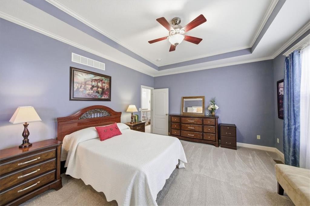 It's rare but oh, so exciting to discover a home that has been this impeccably maintained - few homes can match the care and cleanliness this one has received and you'll recognize it just as soon as you pull up to the front curb. Important details have been thoughtfully improved - from the concrete extension providing a full 3-car wide driveway, to the motion-detecting staircase lighting, to the newly refreshed primary bath and kitchen, to the regularly cleaned gas-log fireplace, and to the BRAND NEW HVAC! And that's just the start of what you'll love about this beautiful home. You'll be mesmerized by the stone-to-ceiling fireplace, not to mention the cozy warmth of its flip-of-a-switch realistic flames and embers. You'll appreciate the timeless architectural trim detailing through every room and the plush new carpet in the main level bedrooms. You've found the unique reverse floor plan offering a true dining room that is just as comfortable as an open dining space for enjoying leisurely meals with family and friends as it is a happy music room with a baby grand piano.