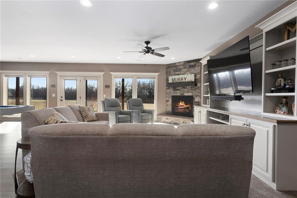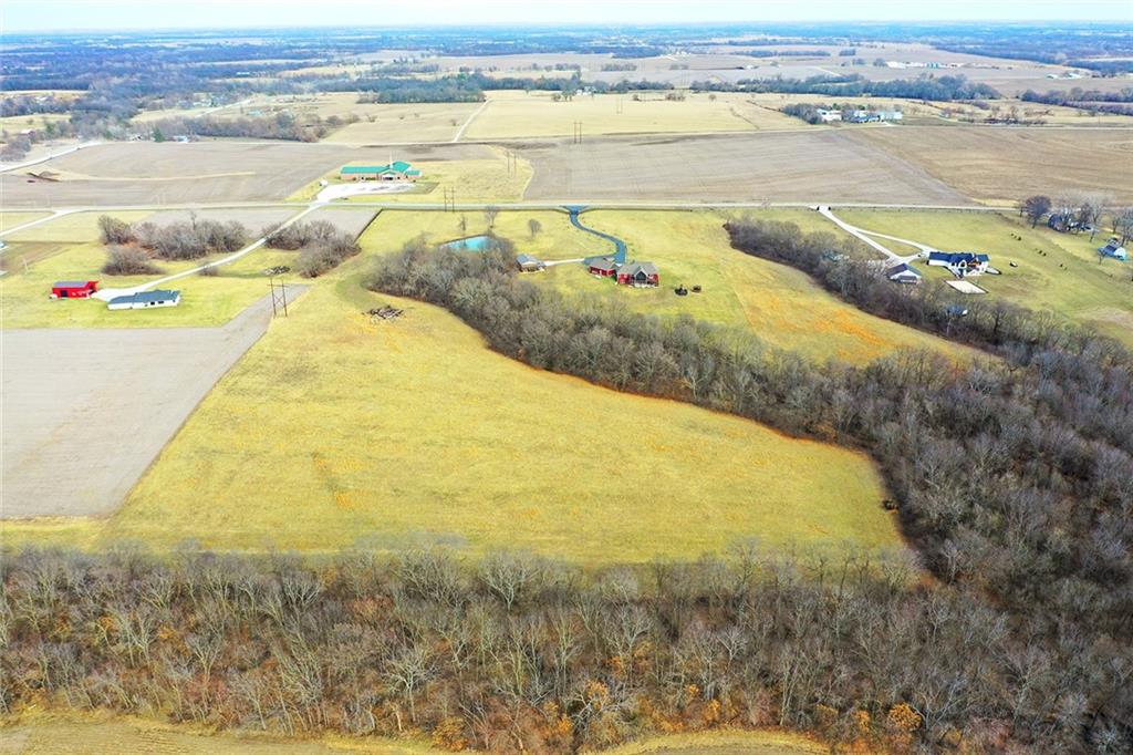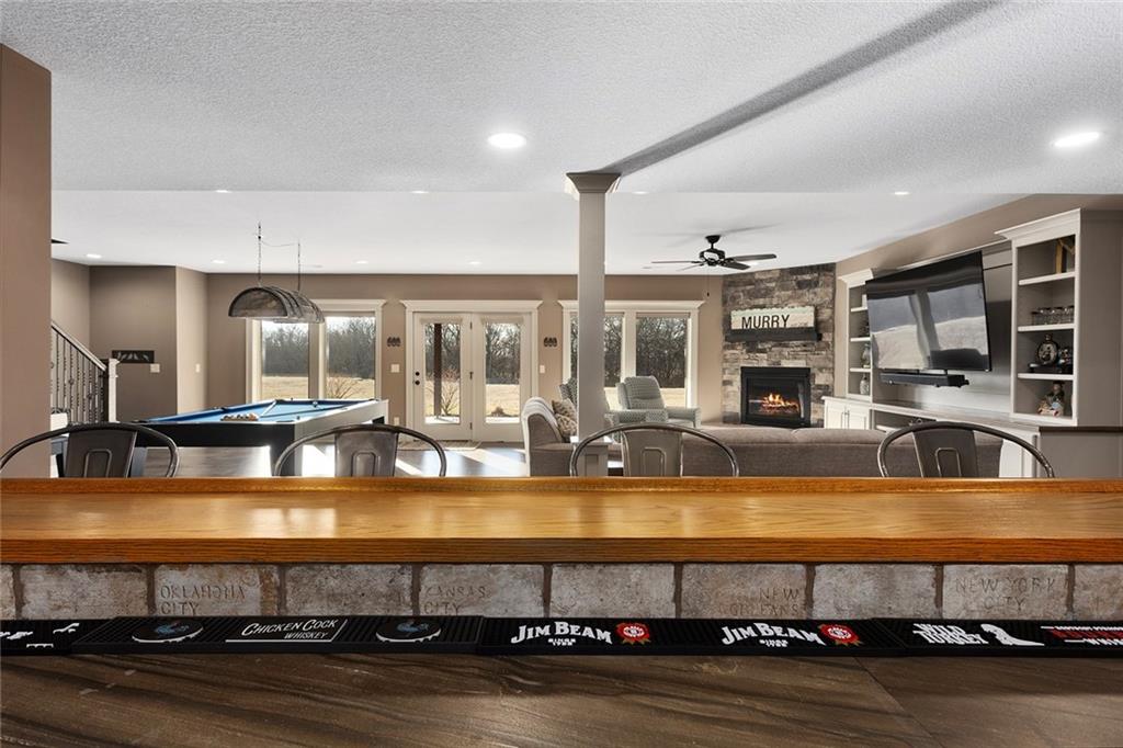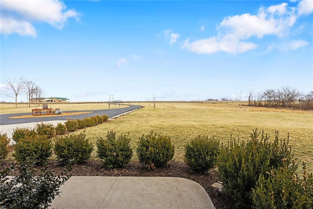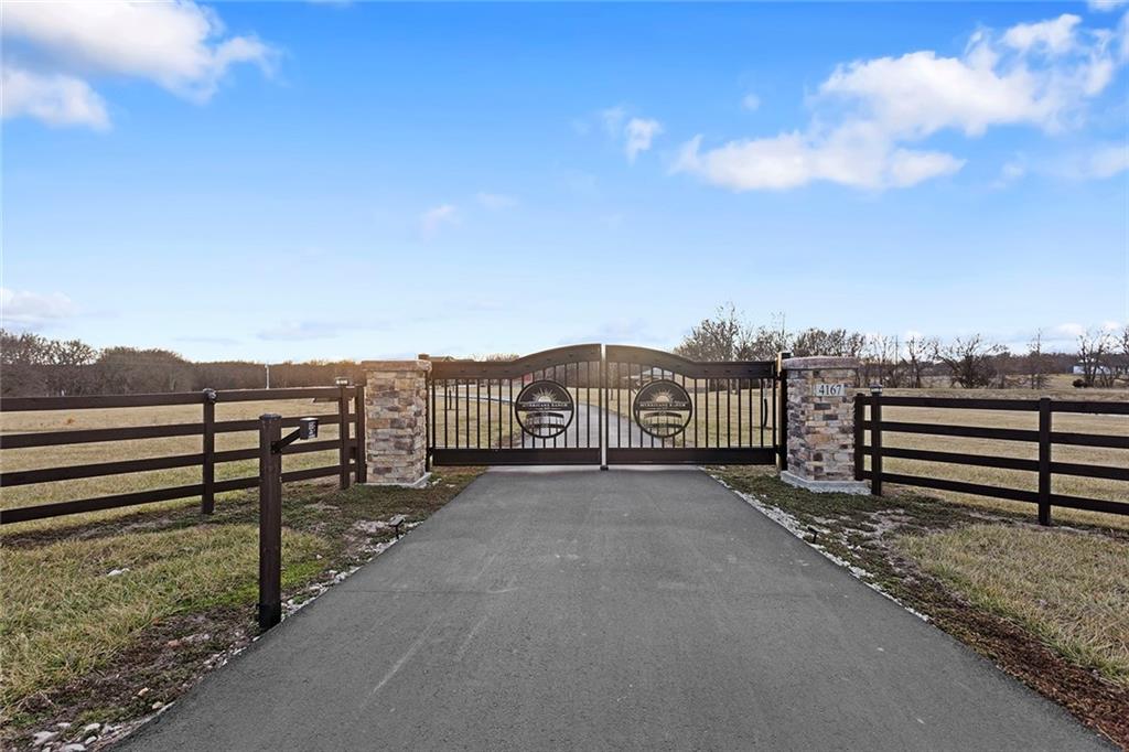 Welcome to Murricane Ranch — a private, gated estate where luxury meets the land. A winding paved drive lined with brilliant Fire Maples creates a breathtaking approach, setting the tone for nearly 25 pristine acres framed by classic Kentucky horse fencing and highlighted by a fully stocked pond. Designed to embrace the natural beauty and uniqueness of the property, this custom-built reverse 1.5-story captures sweeping treed views and unforgettable sunsets from its screened-in covered deck. Inside, the open-concept layout is anchored by a true chef’s kitchen featuring custom cabinet detailing and an amazing walk-in pantry built for both serious cooking and seamless organization. The kitchen flows effortlessly into the main living areas, creating a warm and inviting space ideal for everyday living & entertaining. A thoughtfully designed main-floor pet/mud room adds convenience and function. The private owner’s retreat is a sanctuary of its own, complete with heated floors and a spa-quality shower that elevates daily living. Guest rooms are intentionally positioned for privacy, while the full walkout lower level offers two additional bedrooms, a spacious game room, wet bar, and dedicated media area. Quality construction is evident throughout, including zoned high-efficiency HVAC, engineered laminated floor joists, and a reinforced storm room for peace of mind. The absolutely massive heated 3 car garage (with over 1100 sq ft) accommodates even the largest vehicles with ease to maneuver and provides the option to finish a private apartment above. A 1,500-square-foot heated and cooled outbuilding with office space, bathroom, and an impressive man cave expands the lifestyle possibilities even further. Though privately tucked away, Murricane Ranch is just minutes to I-70 & approximately 20 minutes to Blue Springs—offering convenient access without sacrificing seclusion. This is more than a home; it is a purposefully crafted retreat where land, luxury, & lifestyle converge.