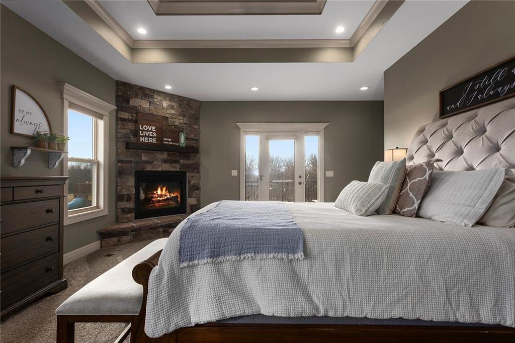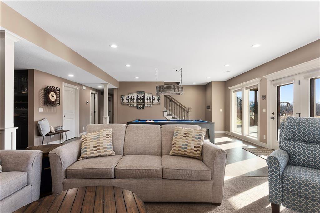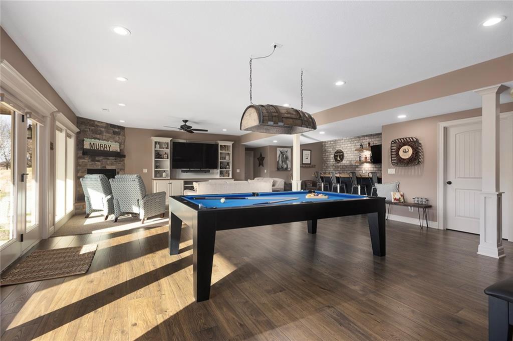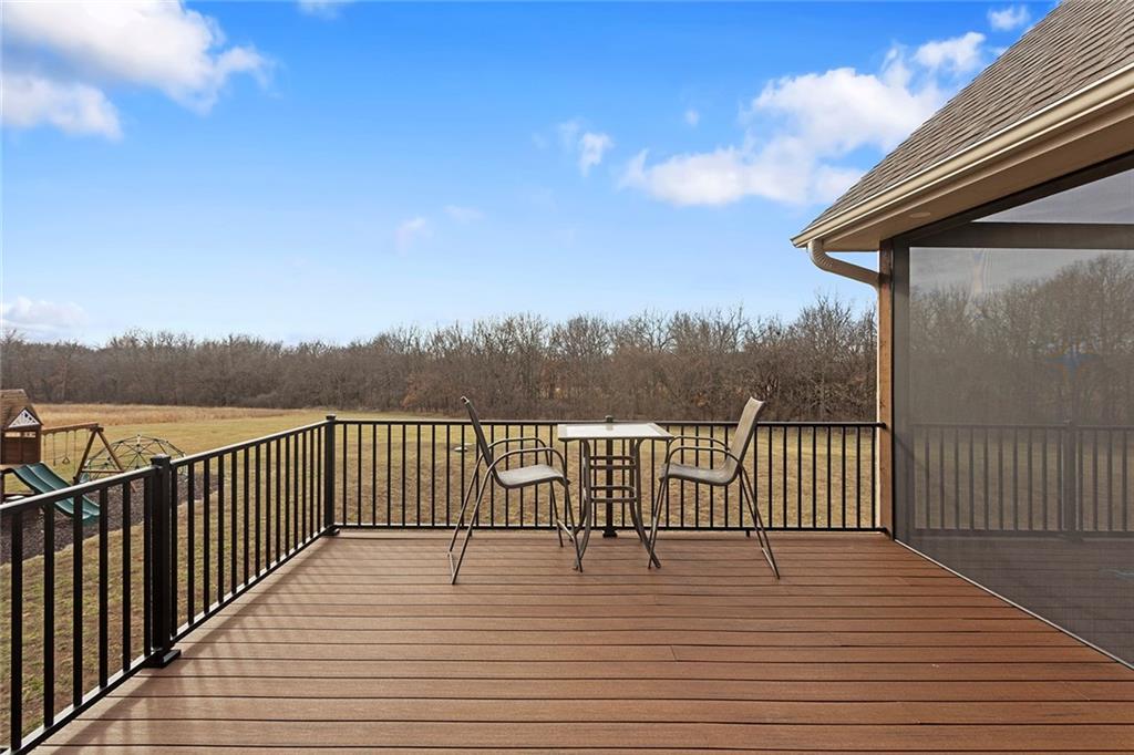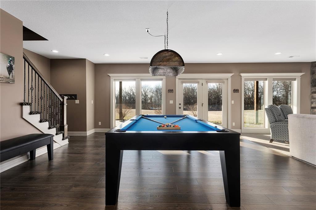 Welcome to Murricane Ranch — a private, gated estate where luxury meets the land. A winding paved drive lined with brilliant Fire Maples creates a breathtaking approach, setting the tone for nearly 25 pristine acres framed by classic Kentucky horse fencing and highlighted by a fully stocked pond. Designed to embrace the natural beauty and uniqueness of the property, this custom-built reverse 1.5-story captures sweeping treed views and unforgettable sunsets from its screened-in covered deck. Inside, the open-concept layout is anchored by a true chef’s kitchen featuring custom cabinet detailing and an amazing walk-in pantry built for both serious cooking and seamless organization. The kitchen flows effortlessly into the main living areas, creating a warm and inviting space ideal for everyday living & entertaining. A thoughtfully designed main-floor pet/mud room adds convenience and function. The private owner’s retreat is a sanctuary of its own, complete with heated floors and a spa-quality shower that elevates daily living. Guest rooms are intentionally positioned for privacy, while the full walkout lower level offers two additional bedrooms, a spacious game room, wet bar, and dedicated media area. Quality construction is evident throughout, including zoned high-efficiency HVAC, engineered laminated floor joists, and a reinforced storm room for peace of mind. The absolutely massive heated 3 car garage (with over 1100 sq ft) accommodates even the largest vehicles with ease to maneuver and provides the option to finish a private apartment above. A 1,500-square-foot heated and cooled outbuilding with office space, bathroom, and an impressive man cave expands the lifestyle possibilities even further. Though privately tucked away, Murricane Ranch is just minutes to I-70 & approximately 20 minutes to Blue Springs—offering convenient access without sacrificing seclusion. This is more than a home; it is a purposefully crafted retreat where land, luxury, & lifestyle converge.