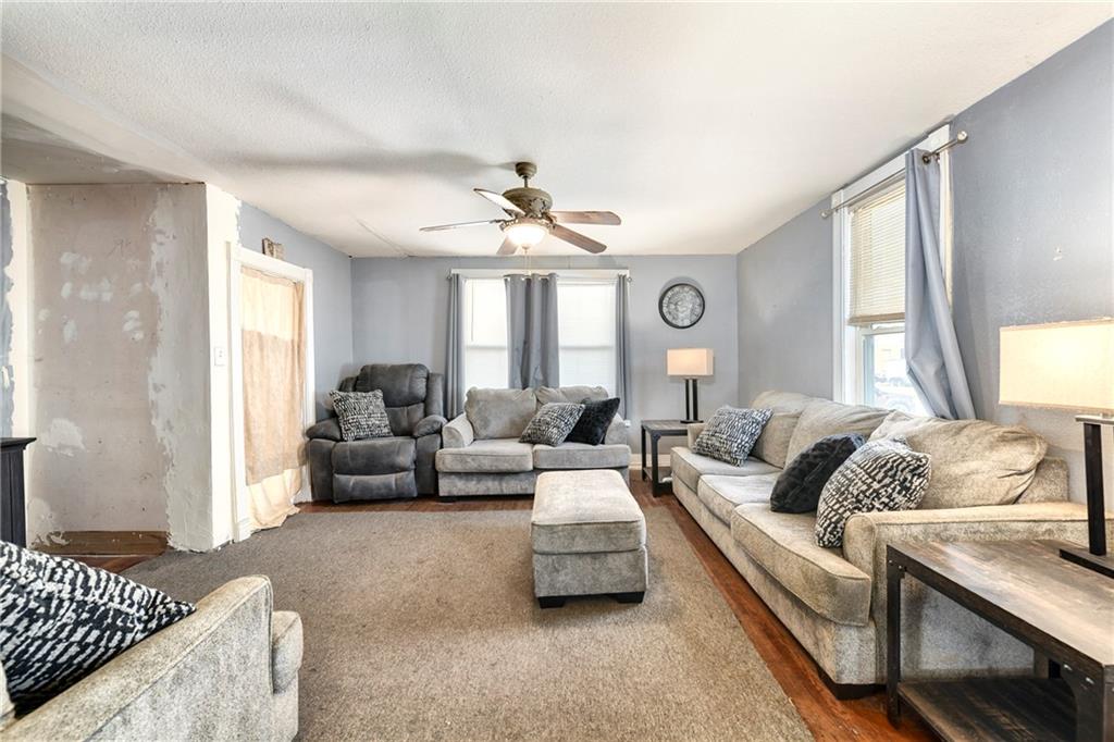 This 1.5-story home features 4 bedrooms and 2 baths and is priced to sell. Located just one block from the square, it sits in the heart of Paola. The main level includes the laundry room, the primary bedroom and full bathroom. Upstairs you'll find three secondary bedrooms and an additional full bathroom. Enjoy plenty of off-street parking thanks to the pass-through driveway. The stove hookup is electric. The extra-large fenced backyard includes a shed and a clubhouse. Attractive brick hardscaping accents the patio and front sidewalks. The roof is approximately 10 years old, the HVAC system is about 12 years old, and the water heater is roughly 4 years old. This home has good bones and is ready for some updates and repairs.