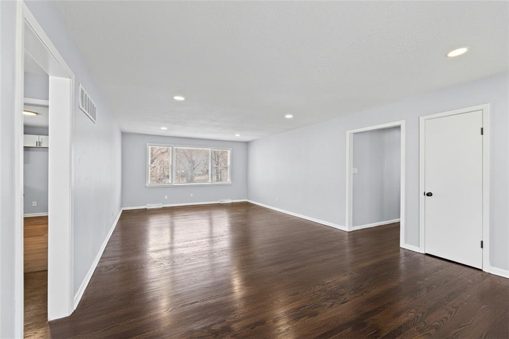 BEAUTIFULLY UPDATED RAISED RANCH! Fresh paint inside and out. Refinished wood floors in most of the home. Spacious and inviting living room. Light and bright kitchen features new crisp white cabinets, granite countertops, subway tile backsplash and stainless steel appliances! Adjacent dining area for convenience. Three bedrooms and two full updated baths! Unfinished basement for all your storage needs and garage! Nothing left to do but MOVE RIGHT IN! Quick access to major highways to enjoy all the KC area has to offer! WELCOME HOME!