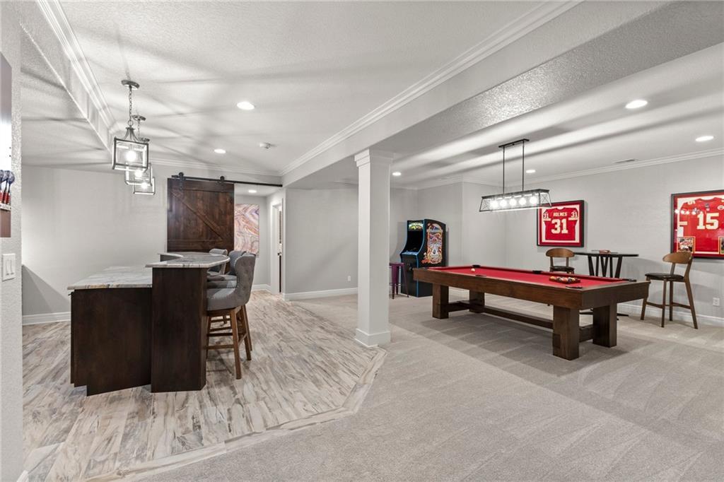 Prepare to fall in love with 14530 Grant Lane in the highly sought-after Windsor Hills neighborhood! A stunning retreat in the heart of Overland Park, KS! This 4-bedroom, 4.5-bathroom home effortlessly combines elegance and functionality, offering the perfect backdrop for modern living. Need extra flexibility? The main floor boasts a dedicated office that could easily transform into a 5th bedroom—ideal for guests or a growing household. Step inside to discover a spacious, open-concept living room bathed in natural light, with a large formal dining room at the entry plus a cozy dinette area. The kitchen is a chef's dream, featuring ample counter space, a generous walk-in pantry, and plenty of room to gather and create. Upstairs, convenience reigns with a second-floor laundry room, perfectly placed near the bedrooms. And the magic doesn’t stop there—venture downstairs to the expansive finished basement where endless opportunities await. This incredible space features a huge living room/entertainment area perfect for movie nights, game days, or hosting large gatherings. The built-in bar adds a touch of sophistication and makes entertaining a breeze, while the full bathroom ensures comfort and convenience for your guests. Whether you’re envisioning a cozy family retreat, a lively party space, or a home gym, this basement delivers in spades. Don’t overlook the outdoor sanctuary waiting just for you. The private backyard is a lush retreat, featuring beautiful landscaping that creates a peaceful oasis for relaxation or entertaining. Picture yourself enjoying morning coffee on the patio, hosting barbecues with friends, or simply unwinding amidst the greenery after a long day. To top it off, imagine waking up to serene views of the neighborhood’s large, tranquil pond just beyond your front door. This home offers the lifestyle you’ve been searching for: space, charm, and a location that can’t be beat. Schedule your tour today and discover the possibilities!