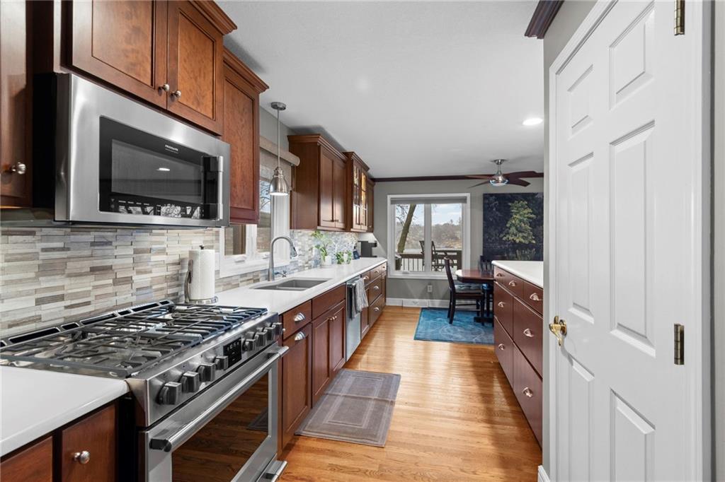 Are you a lake lover and outdoor enthusiast seeking direct water access for boating, fishing, and paddle sports? If you’ve been dreaming of everyday serenity on the water, this first-tier, move-in-ready lake home delivers. With panoramic water views and your own private dock, you can fish, take sunset pontoon rides, paddle board, or simply relax and soak in the peaceful sounds of nature. This beautifully maintained 2-story home features 3 bedrooms, 3½ baths, and a 2-car garage, and is designed for year-round lake living and easy entertaining. The recently remodeled kitchen shines with quartz countertops, a gas stove, and a breakfast bar, offering open sightlines to an inviting main level with a custom woodwork fireplace and stunning lake views. Upstairs, you’ll find all three bedrooms, two recently remodeled full baths, and a newly added laundry closet with a washer/dryer combo. The finished walkout basement is an entertainer’s dream, complete with a custom wet bar featuring granite countertops, a wine cooler, refrigerator, ice maker, microwave, and dishwasher. This level also includes a cozy family room with a second custom fireplace and a full bath and second washer/dryer for easy access after a day on the lake. Located in the highly rated Park Hill School District, you can enjoy wildlife right outside your door or walk to the nearby park to enjoy tennis, pickleball, bocce ball, basketball, ball fields, and walking trails.