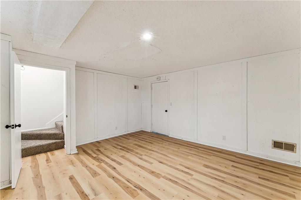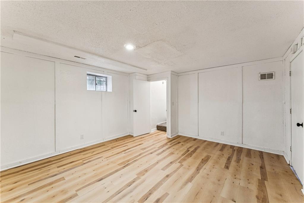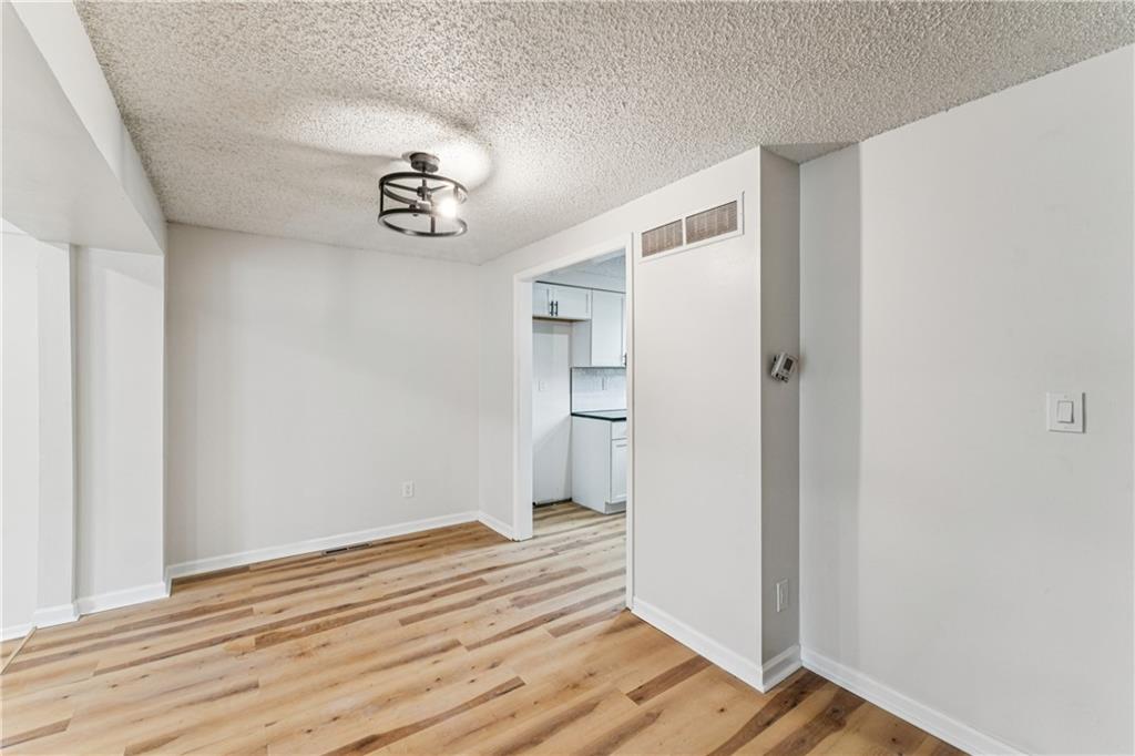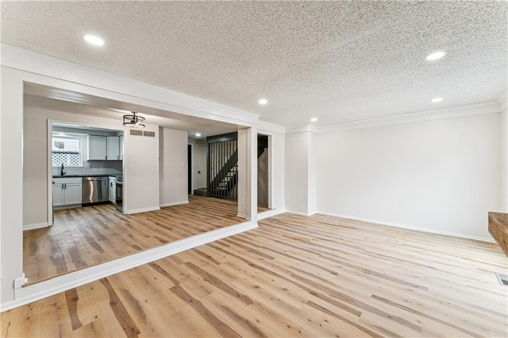 Beautifully updated townhome with a timeless contemporary design and bright, open feel throughout. The main level showcases light oak LVP flooring, sleek black hardware and lighting, and a slate-tiled electric fireplace that anchors the living space. The fully renovated kitchen features brand-new cabinetry, granite countertops, a classic subway tile backsplash, and stainless steel appliances. Upstairs, spacious bedrooms with vaulted ceilings continue the light and airy aesthetic, while the updated main bathroom offers new tile floors and surrounds, a stylish vanity, and modern fixtures. The finished basement provides a versatile bonus room perfect for a home office, rec room, or non-conforming bedroom. In addition to the cosmetic updates, the home includes a new furnace, A/C unit, water heater, and energy-efficient windows. Enjoy maintenance-free living with access to a pool, park space, and common areas; All the perks of homeownership without the hassle.