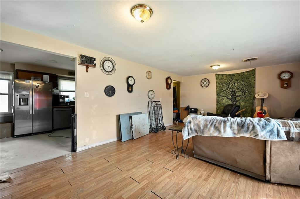 This home is nestled on over an acre thats boasted with trees, and a detached 2 car garage that provides ample storage. Two bedrooms got added in the basement making this a 4 bedroom, 2 bathroom home. The dishwasher and refrigerator have been replaced in the last two years. Bring your ideas, and make this one your own!