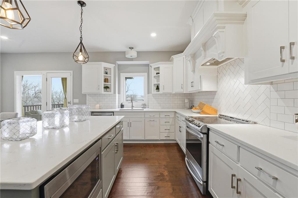 Better than new and thoughtfully designed, this beautiful 2-story home in the desirable Chapel Ridge subdivision offers space, comfort, and scenic views. From the moment you enter, you’re welcomed by a formal dining area perfect for gatherings and special occasions. Just beyond, a convenient butler’s pantry leads into the light-filled kitchen featuring quartz countertops, a large center island, pantry, and plenty of workspace. The adjoining breakfast area provides a comfortable spot for everyday dining. Step outside to enjoy the covered, screened-in Trex deck with sleek metal railings—designed for low-maintenance living—overlooking the fenced backyard and peaceful pond view. The kitchen and breakfast area open seamlessly to the inviting family room, highlighted by a stunning stone fireplace with built-in shelving and cabinetry. All four bedrooms are located on the second floor, each generously sized with ample closet space and direct access to a full bathroom. The oversized primary suite offers a relaxing retreat with double vanities, a jetted tub, dual-headed shower with bench, and a spacious walk-in closet with convenient access to the laundry room. The finished basement expands the living space with a comfortable living area, dry bar, room for game tables, a full bathroom, and a storm shelter, along with abundant storage. With beautiful finishes, functional design, and tranquil pond views, this home truly offers the best of modern living in Chapel Ridge.