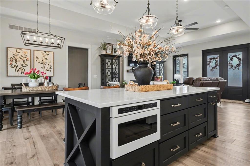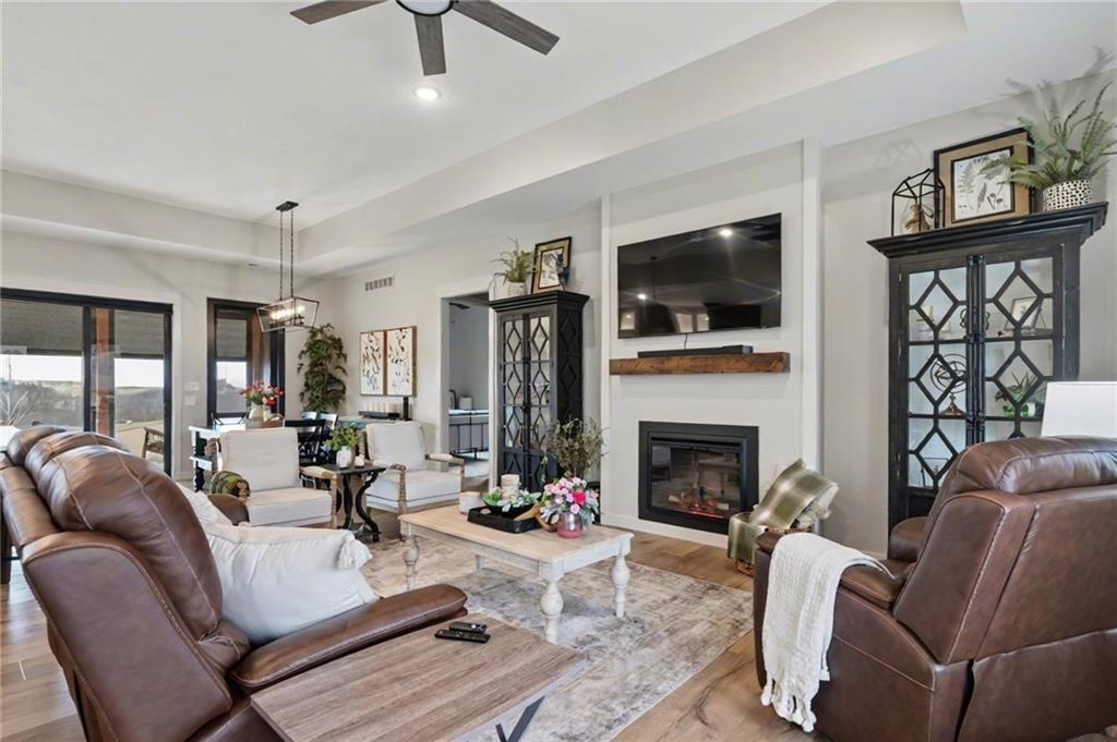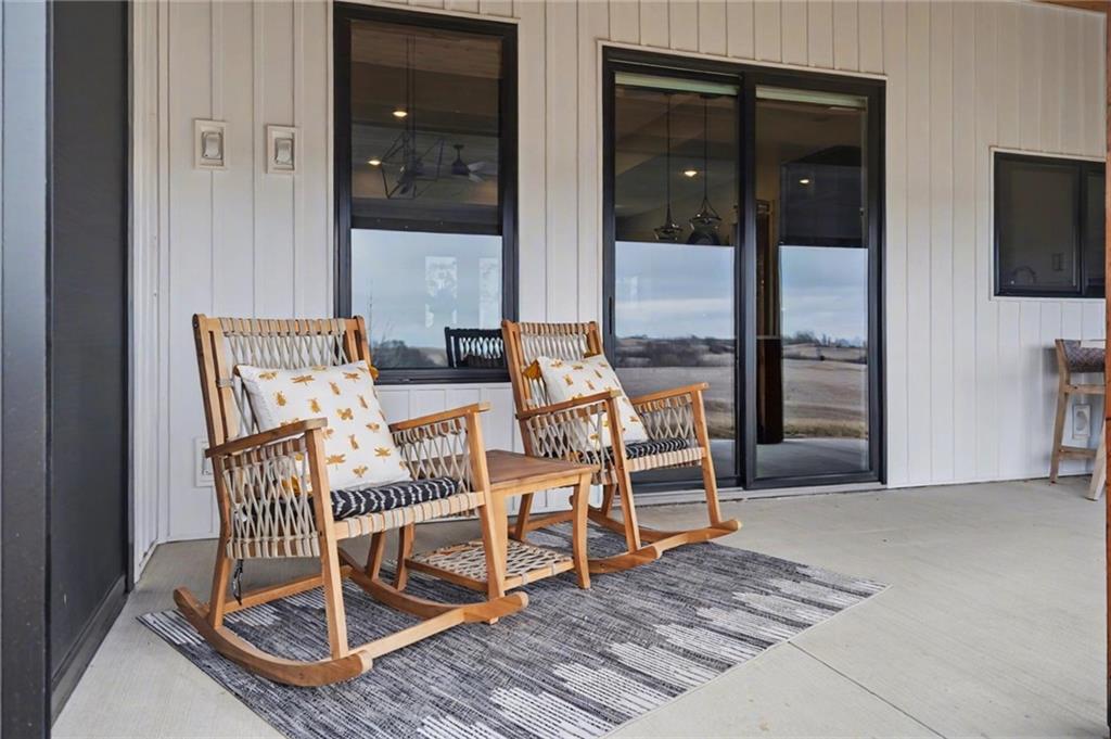 You walk in and feel like you are entering a personal retreat. You'll love the open floor plan, large windows, high ceilings, and beautiful views throughout. Kitchen features high end appliances, custom cabinets and a large island with ample storage making it a perfect place to gather with family and friends. This home was built with a purpose, it has no stairs, wide doorways, an oversized three car garage with ample parking, garage storage and a safe room for emergencies. Beautifully landscaped. This home was built with a Doniphan County Restoration grant and has 10 more years of tax rebates saving you tens of thousands of dollars. Covered porch on the back of the house has heavy custom screens mounted on the perimeter of the porch that work off of a remote. House backs to the future Doniphan Hills Golf Course. As the golf course gets completed, the demand is sure to go up. Come take a look.