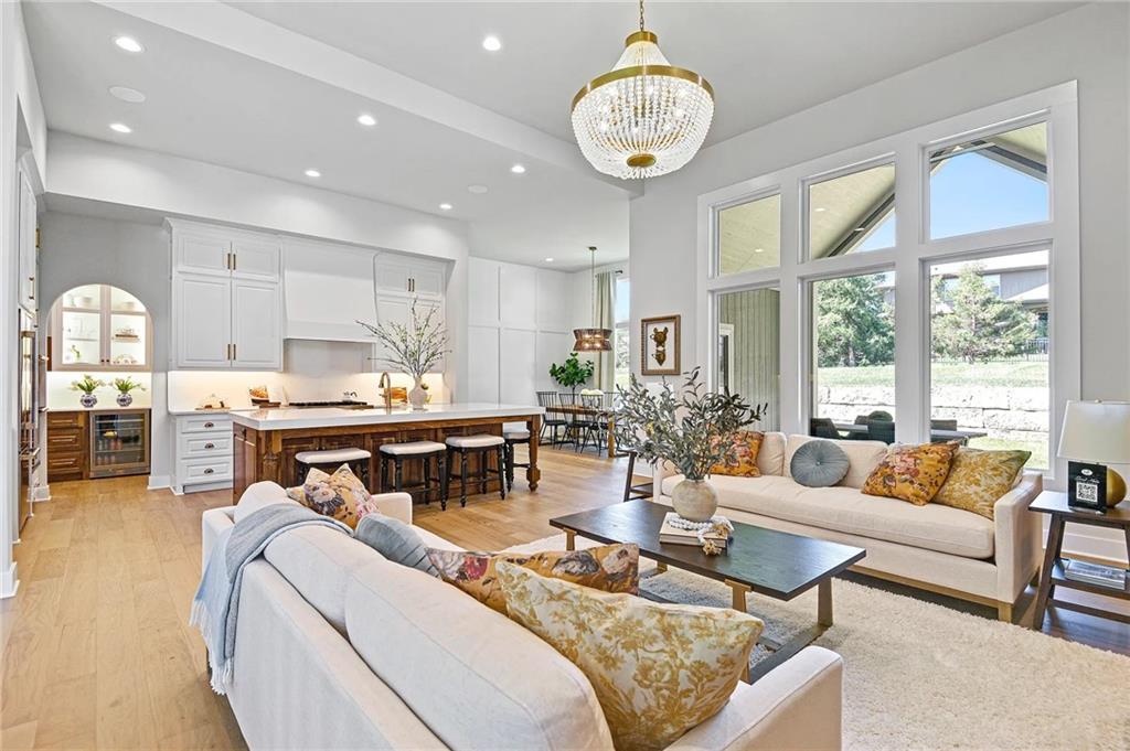Now under construction in the highly sought-after WaterCrest Landing, The Rosebud—one of Roeser Homes’ most beloved reverse 1.5-story floor plans—offers timeless design paired with modern luxury on a beautiful daylight lot backing to serene greenspace. From the moment you step inside, this home impresses with its open, airy layout, soaring ceilings, walls of windows, elegant arched doorways, and curated designer finishes throughout. The chef-inspired kitchen is a true centerpiece, featuring a spacious island with seating for six, abundant cabinetry, and a generous dining area that comfortably accommodates an eight-person table—perfect for hosting gatherings large and small. The great room invites relaxation with a cozy fireplace flanked by custom built-ins and flows seamlessly onto the covered deck, complete with a second fireplace—an ideal setting for entertaining or quiet evenings enjoying views of the surrounding greenspace. Tucked away for privacy, the main-level primary suite is a peaceful retreat with a spa-like bath, showcasing a freestanding soaking tub, separate shower, and a large walk-in closet that conveniently connects to the laundry room. A second main-level bedroom near a full bath offers flexibility for guests, a home office, or additional living space. The finished lower level is equally impressive, featuring a wide staircase with abundant natural light, a spacious family room with a wet bar, two additional bedrooms, two full baths, and ample storage. Blending thoughtful design, comfort, and scenic surroundings, this exceptional home captures the best of luxury living in one of Lenexa’s premier communities. ***NOTE THE PHOTOS ARE FROM ANOTHER SIMILAR MODEL***
