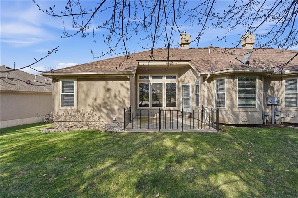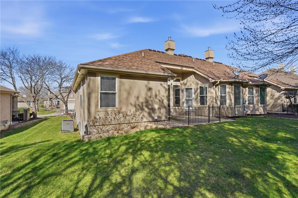 Maintenance-provided Raintree Villa in the highly sought-after Raintree Lake Neighborhood! This super clean, well-maintained home features soaring ceilings, abundant natural light, and a cozy gas fireplace. A flexible dining space offers room for two dining areas or a sitting area. Stainless steel appliances, plus washer and dryer stay. Spacious primary suite includes a walk-in closet and private bath with double vanity, separate shower, and jetted tub. Enjoy walkout access to the patio from the kitchen. A second bedroom perfect for guests. The partially finished basement offers additional living space with a full bath. Plenty of storage space. This has fantastic neighborhood amenities and low-maintenance living!