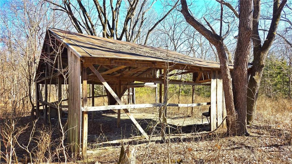 Linn County, KS, one-of-a-kind, secluded 8.7-acre tract. This property features beautiful hardwood throughout, is fenced on 3 sides, features nearly 1/4 mile of road frontage along the south and west side, and has one pond. You will be hard pressed to find a more beautiful property as this property features little overgrowth and an abundance of Hickory, Red Oak, White Oak, and Cedar thicket, providing the perfect eastern Ks whitetail sanctuary. In the heart of the property rests an original homestead featuring primitive rock foundations, one old moonshiner shed, and a fully encapsulated cellar with concrete in good condition on all sides. The ceiling height is just over 6' tall. Tremendous opportunity to convert into a super cool bunker shelter.