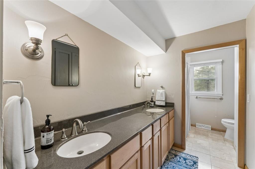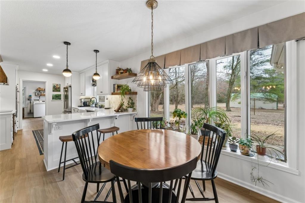 Welcome home to your new country estate! Pulling into this property, you'll hear the crunch of a freshly graveled driveway, and completely surrounded by an array of trees, giving full privacy, is a sprawling home that will await you in the quiet countryside. Inside you are greeted with an inviting entryway and sitting room with large windows facing north allowing natural light in this cozy room. Just a little further and you have a formal dining area with stylish fixtures and vibrant, stylish wall paper. The formal living room has vaulted ceilings, plenty of room for entertaining, and large, painted bookshelves on either side of a wood-burning fireplace. The room to not miss is the fully renovated kitchen, with custom cabinets, quartz counters, accents, hand-picked tile and all new appliances--you will just be excited to cook dinner every night! Towards the back, behind the kitchen is your mud area, garage with a Tesla EV charger, laundry room, and half bath for guests. The main level features 3 bedrooms and 2 bathrooms, including the primary suite, and upstairs are the remaining 2 bedrooms and a full bathroom. The basement will be a fabulous place to make your own. Almost 1,000 sq ft of finished space offers a ton of possibility for another living, office space, card table, pool table, you name it! The HUGE bonus is that you did NOT sacrifice storage space, because there is about 900 sq ft of that on the other side of the basement! Be at ease with the well-maintained mechanicals, including a new septic system as of 2021 and newer propane lines from the tank to the house. Out back you have a lovely patio space that faces into the woods. Nearby, a 30x40 outbuilding perfect for storage and workshop space. The immense privacy is something to dream about with this one of a kind home. Convenience, modern amenities, and country living all wrapped into one!
