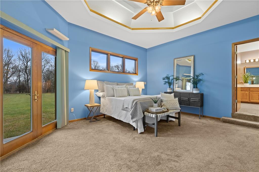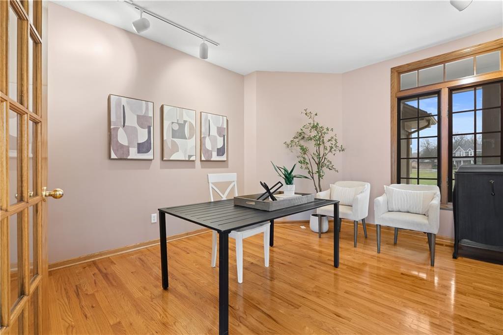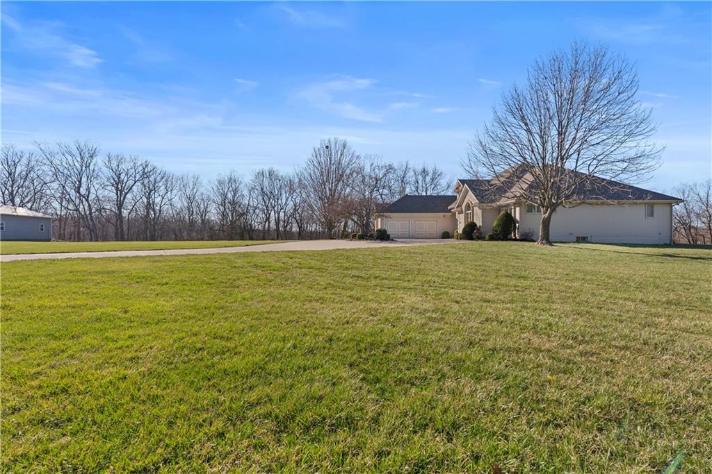 Nestled on approximately 2.2 acres in the sought after Easley Estates community of Lee’s Summit, this ranch home offers the space of country living while keeping everyday conveniences just minutes away. From the moment you arrive, the setting alone makes an impression with wide open views. Inside, the main level is thoughtfully designed for comfortable living and easy entertaining. All three bedrooms are conveniently located on the main floor. The home features an abundance of windows that bring in natural light and peaceful views of the surrounding acreage. The layout includes a dedicated home office, formal dining room, sunken living room, and an eat in kitchen featuring an abundance of cabinetry for storage and functionality. A main level laundry room adds everyday convenience. Take a moment to step outside and enjoy the lanai and the views that it offers. Wildlife, a morning coffee or an afternoon spent enjoying a new book, this will quickly become one of your favorite parts of the home. The lower level offers excellent flexibility. A fully finished room with a closet provides the perfect option for a fourth non conforming bedroom, workout room, playroom, or private guest space. The remainder of the basement has been lightly finished and is ready for the next owner to add their personal finishing touches and expand the living space even further. Step outside and enjoy the wide open backyard, complete with a storage shed for tools and equipment. The garage has been upgraded with durable epoxy flooring, adding both function and polish. Easley Estates is loved for its peaceful, acreage style living while still being incredibly convenient. Easy highway access makes commuting simple, and everyday essentials like grocery stores, restaurants, the library, and the hospital are all just minutes away. A rare opportunity to enjoy space, comfort, and location all in one property.