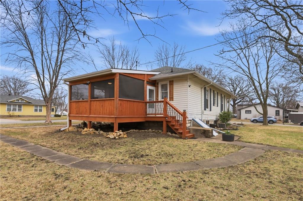 Welcome home to this charming Gardner bungalow filled with character and comfort! This is a beautifully cared for 2-bedroom, 2-bath home! True one-level living awaits with gorgeous hardwood floors, fresh interior paint, and a bright, open family room–dining combo that makes the heart of the home feel warm and connected. The inviting front porch, now updated with brand-new railings, sets the tone the moment you arrive. Out back, the newer screened-in covered porch offers the perfect retreat for peaceful mornings with coffee or relaxing evenings under the glow of twinkle lights. This delightful home sits on a large corner lot with a beautiful yard, detached garage, small shed, and a partial basement ideal for storage. Full of charm, affordability, and that classic Gardner feel, this home is ready to welcome its next owner with open arms.