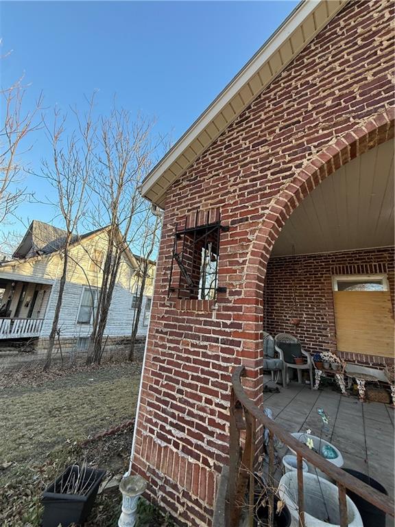 View of property exterior featuring brick siding