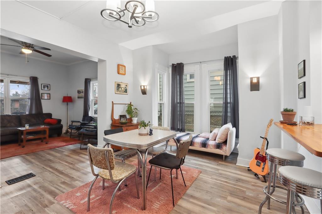 This bright, open floor plan was fully remodeled 6 years ago- roof, HVAC, water heater and sewer line 7 years old or less! On the first floor you'll find the living room, half bath, spacious dining room with an atrium reading nook, a stylish kitchen with tons of storage and open shelving, plus a hard to find main floor bedroom with full bathroom that opens to the large, partially fenced back yard! This room also makes a great family room with laundry hookups in the closet if you prefer. The 2nd floor offers 2 large bedrooms, huge walk in closet and large bathroom with more laundry hookups! Inviting front porch and back patio are great for relaxing with your favorite beverage or entertaining. Private drive big enough for 4 cars!