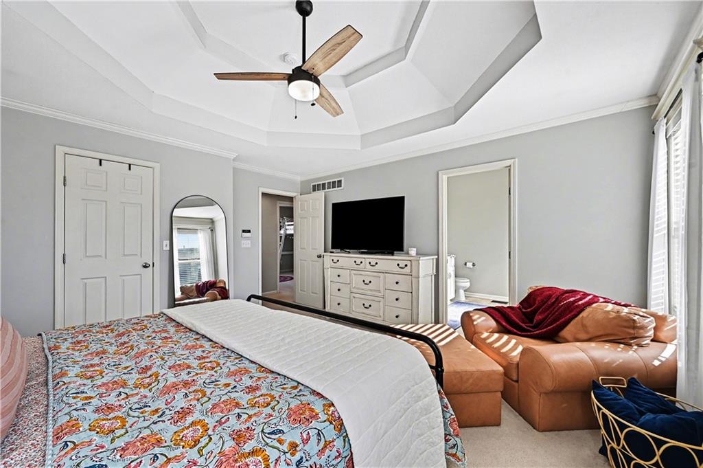 Meticulously maintained 4-bedroom, 3 bath home with a fantastic open floor plan in the highly desirable Benson Place community. Enjoy an unbeatable location just minutes from the neighborhood pool, scenic walking trails, and park in this warm, welcoming, and family-friendly neighborhood. The open eat-in kitchen is filled with natural light and features a center island and updated appliances perfect for morning coffee, weeknight dinners, and gathering with friends and family. The living area boasts vaulted ceilings, large windows, updated fixtures, and a cozy fireplace, creating a bright and inviting space with a great flow for easy entertaining. Two guest bedrooms share a hall bath with a shower-tub combo, while the generously sized primary en-suite offers a relaxing retreat with dual vanities and a separate soaker tub. Laundry is conveniently located on the bedroom level for everyday ease. The finished lower level adds even more space to enjoy with a second family room, the home’s fourth bedroom, and a full bath ideal for guests, a playroom, or movie nights. Don’t miss the hidden storage/bonus room tucked under the stairs! Step outside to a large deck overlooking the fenced backyard, perfect for relaxing evenings or weekend get-togethers. While a spacious three-car garage provides plenty of room for vehicles and storage. This home truly combines comfort, space, and an incredible community setting.