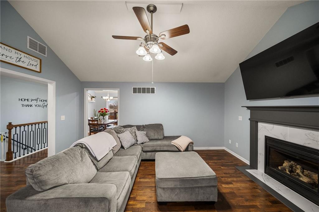 Beautiful Ranch in a Great Odessa Location! Step inside this charming ranch featuring a bright living room with vaulted ceilings and an open, inviting feel. The updated colors and décor give the home a fresh look, while the kitchen offers plenty of cabinet space and generous counter areas. The spacious primary bedroom also features vaulted ceilings, creating a relaxing retreat. Enjoy the convenience of main floor laundry and generously sized main-level rooms. The finished lower level includes an additional bedroom and full bath, offering 4 bedrooms and 3 bathrooms. Outside, the backyard features a rear-entry double garage with a large concrete pad. Convenient location for an easy commute — come take a look!