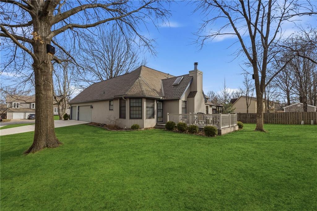 True ranch home that is handicap accessible, offering convenient single-level living in a quiet Overland Park neighborhood. The home includes a wheelchair ramp located in the garage, providing easy access into the home; the ramp can remain with the property. Inside, you’ll find a warm and inviting layout featuring a spacious great room with vaulted ceilings, beautiful wood trim, and a cozy brick fireplace perfect for gatherings. The home flows into a bright formal dining area and an open kitchen with granite countertops, abundant cabinetry, and ample workspace for cooking and entertaining. The primary suite offers a comfortable retreat with large windows and a walk-in closet. Main-level laundry adds everyday convenience. The home also features a full unfinished basement, offering excellent potential to add significant square footage and customize the space to fit your needs. Enjoy the private deck and backyard ideal for relaxing or entertaining. Don’t miss out on this rare opportunity!
