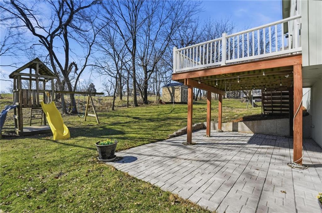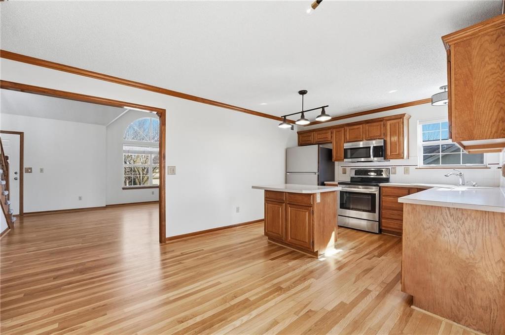Welcome to this 4 bedroom, 3.1 bath home located in the highly sought after Park Hill School District with Hardie Board siding! The main level offers warm wood flooring and a bright, open living room with vaulted ceilings, ceiling fan, and cozy fireplace that creates a great space to relax or gather with friends. The dining area flows right out to the deck, making indoor and outdoor entertaining easy. The kitchen features wood floors, an island, and an eat in space that keeps everyone connected while cooking or hosting. Step outside to enjoy the composite deck with updated railings, a great spot for morning coffee or evening hangouts. The primary suite includes LVP flooring, a walk in closet, tray ceiling, and a spacious en suite bath with double sinks, a jetted tub, and separate shower. Three additional bedrooms provide comfortable space for guests, work from home setups, or hobbies. The finished lower level adds even more living space with a large rec room, full bath, and flexible area perfect for movie nights, a game room, or workout space. With multiple living areas, great outdoor space, and a fantastic Park Hill location, this home is ready for its next chapter.