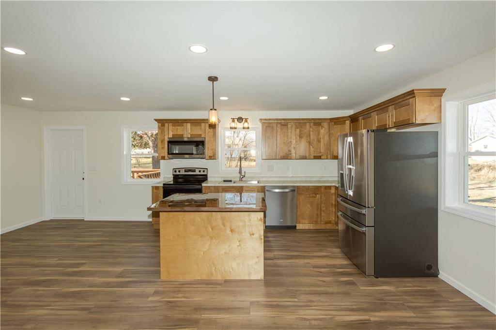 If you've been waiting for a home where EVERYTHING is new... this is it! This fully remodeled home has been updated from top to bottom and is completely move-in ready. Inside you’ll love the open kitchen, living, and dining layout, featuring an island with seating and all appliances included. The main level offers 2 bedrooms and a full bathroom, while the finished basement adds 2 non-conforming bedrooms, a 2nd bathroom, and a spacious family room—plus extra room for an office, play area, or hobbies. The basement also includes painted concrete floors for a modern, durable finish and a handy storage area. Step outside and enjoy the front porch, spacious back deck, and good-sized yard, all tucked away on a quiet dead-end street. Additional highlights include Smart LP siding, a new roof, new tankless water heater, new package HVAC system and a gravel driveway. Everything in this home is brand new—just move in and enjoy!