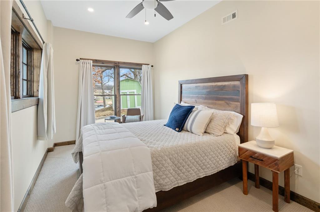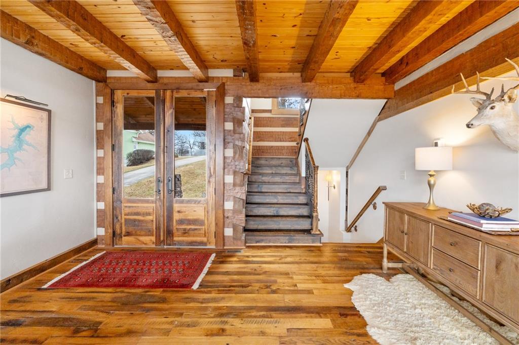 Magazine-Worthy Waterfront Living! Welcome to this stunning turn-key waterfront retreat where craftsmanship and thoughtful design shine in every detail. From the rich reclaimed oak floors to the beautifully crafted walnut cabinetry, this home blends elegance with warmth, creating a grand yet inviting atmosphere. Soft, timeless tones and numerous recent updates make this home feel both stylish and comfortable. The spacious layout offers 5 bedrooms plus 2 non-conforming rooms, providing plenty of space for family and guests. A charming bunk room adds a fun touch for gatherings, while the fully furnished movie theater room is perfect for cozy nights in. The primary suite opens directly to a peaceful screened-in porch, allowing you to wake up and step outside to the sights and sounds of the lake. Take in panoramic views of the quiet cove from the extended maintenance-free composite deck. Outdoor living continues with a cement patio, hot tub, and beautiful stone steps leading down to the dock, creating the perfect setting to enjoy both indoor and outdoor lake living. Natural rock walls enhance the landscape, while the private dock with boat lift and jet ski port are ready for your enjoyment. Located behind a buoy in a peaceful cove, this spot is ideal for fishing or simply soaking in the tranquility of lake life. You will love the abundance of fish including catfish, bass, crappie, and walleye—truly a fisherman’s paradise. Situated on the beautiful 630-acre lake at Lake Viking, residents also enjoy access to a full-service marina and an active lake community. Recent improvements include new zoned heating and cooling, new carpet, a remodeled bathroom, updated fixtures, and new lighting, adding even more value and comfort. This exceptional lake home offers the perfect blend of luxury, comfort, and natural beauty—all set within the picturesque surroundings of Lake Viking. A property like this must be experienced in person to truly appreciate.