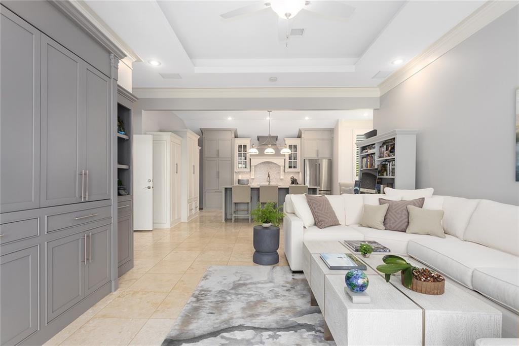 Tucked away on one of the most coveted lakefront lots in the Northland, this one-of-a-kind, custom-built home was thoughtfully designed by an interior designer to take full advantage of its breathtaking views. Nearly every room in this meticulously maintained residence has water views. Step into the grand foyer where soaring columns and faux marble accents set an elegant tone. From there, a second entry welcomes you with a barrel-vaulted, hand-painted ceiling and sweeping lake views that draw you further into the heart of the home. The French country-inspired kitchen is a dream for any entertainer or home chef, featuring a hand-selected marble island, custom cabinetry, a cozy stone fireplace, built-in entertainment center and desk, and an all-glass breakfast room with arched windows overlooking the lush, landscaped yard with multiple water features. The hearth room flows into a spacious living room with a see-through fireplace, a wall of glass framed with plantation shutters. The primary suite is a peaceful retreat with patio access, high ceilings, custom built-ins, upgraded carpet, and plantation shutters. The ensuite bath offers a spa-like experience with a dome ceiling over the soaking tub, walk-in shower, and dual vanities. A second bedroom also has direct patio access and features elegant travertine floors. Recently added second living quarters include a full gourmet kitchen, living area with built-ins, breakfast nook, second master suite with luxurious bath, large walk-in closet, and even a second laundry room—perfect for guests, in-laws, an adult child, or anyone looking for privacy and independence. The space also features its own private entrance. Additional highlights include a spacious three-car garage with high-end epoxy floors, a private dock with a pontoon boat included, full irrigation system, expansive patio and deck spanning the length of the home, and professional landscaping throughout. This is more than just a home—it's a lifestyle.