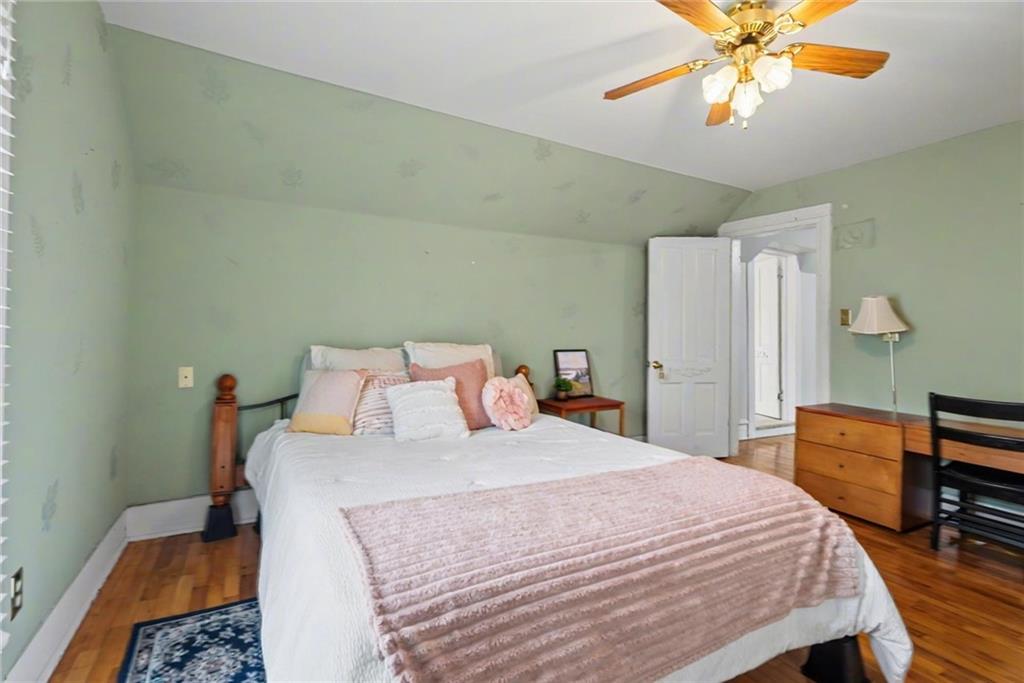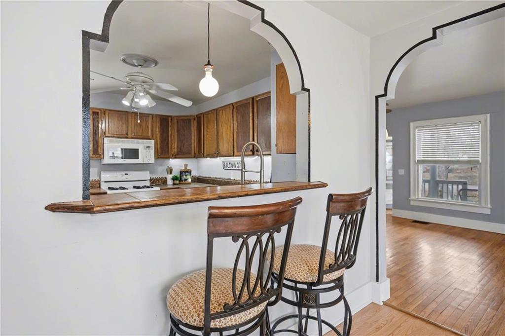 Step into this charming 1900's-built home with timeless character and thoughtful updates, including 4 spacious bedrooms and 2 bathrooms, located on a large corner lot. This home features original hardwood flooring and interior doors, along with beautiful trim details, tall ceilings, and large windows allowing for natural light throughout. The primary bedroom, full bath, and laundry/mud room are conveniently located on the main level, with an additional 3 spacious bedrooms and full bath, complete with beautiful claw foot tub, on the 2nd level. The kitchen has ample cabinets, gas range, some stainless-steel appliances, kitchen island, a detailed opening with bar stools and views into the dining room, perfect for entertaining. The large dining room has a beautiful bay window complete with cozy seating overlooking the backyard retreat. The large laundry/mud room with built-in ironing board, has additional cabinetry, space for a possible pantry, and an area perfect for crafting or a home office. Enjoy relaxing on the covered front porch sipping your morning coffee, or entertaining in the large backyard surrounded by a privacy fence, mature trees, the sounds of nature, and with space perfect for play, gardening, or outdoor gatherings. Let’s not forget the large shed for hobbies or storage, and the side carport for covered parking and additional outdoor storage. Located with easy access to Hwy 59 and Hwy 56 allowing for a short commute to Lawrence, Ottawa, KC and surrounding. AC 2 years old/Furnace approx 6 years old. PRICED under county appraised value, this adorable home is move-in ready and the perfect opportunity to bring your own personal touches.