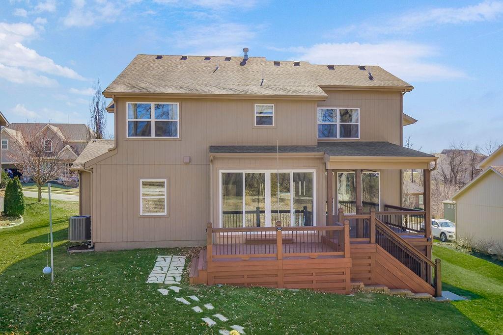 Experience effortless luxury in this meticulously maintained 5-bedroom, 5-bathroom residence located in the heart of Parkville’s premier golf cart community. This home arrives on the market in pristine condition—freshly patched, cleaned, and ready for your immediate move-in. The main level is a showcase of open-concept living, highlighted by a gourmet kitchen with a massive walk-in pantry, with a gas fireplace in the living room that must be seen to be appreciated. Transition easily to the large covered back deck, which offers a peaceful vantage point of the backyard. Follow the stone path to your private 'summit'—a hardscaped, natural-gas-piped fire pit that stays shaded and cool most of the day, perfect for gatherings any time during the day. The lower level features a professional-grade, theater-ready finished basement, with projector and a 5th full bath, providing the ultimate footprint for entertaining. Beyond the property lines, enjoy the unique perks of South National living: hop in your golf cart for a scenic ride to the YMCA, local restaurants, or all the way to downtown Parkville and English Landing Park. (Note: The owners' 2022 Elite Lithium-Ion 4-seater cart is available for purchase!) Don’t miss this rare '5-and-5' gem in the Park Hill School District.
