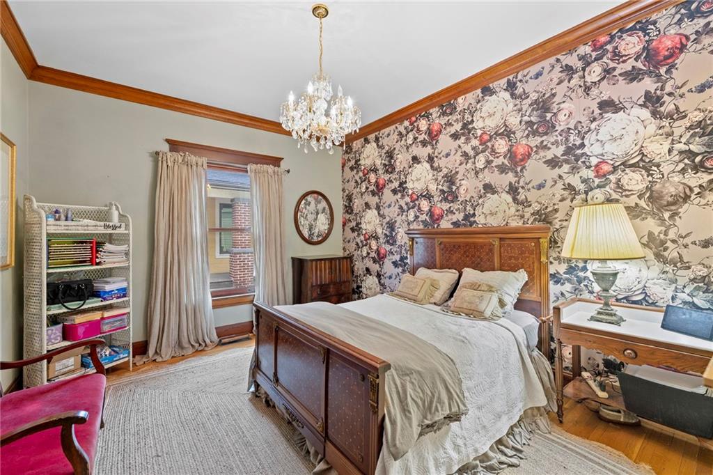 Expect to be impressed as you step into the timeless elegance of the "Washburn" house, a rare residence that masterfully blends old-world charm with sophisticated modern comfort. Meticulously updated while preserving its historic integrity, this home showcases authentic craftsmanship through unique chandeliers, ornate trim, wide crown and baseboard moldings, and original solid wood interior doors. The architectural character shines in the 3 sets of beautiful pocket doors and the lead glass windows that grace the front of the home, while modern peace of mind is provided by newer windows throughout the rest of the house and a central heat and air system installed within the last 5 years. A large, covered front porch invites you into a grand entry room, flanked by an elegant living room featuring an original fireplace and a lovely, sunlit parlor. The gourmet kitchen is a chef's dream, boasting cherry cabinetry, a quartz island, and high-end appliances including a gas stove and a new convection oven with air-frying capabilities. Two butler doors offer seamless flow into the massive formal dining room, perfect for hosting memorable gatherings. The main level features gorgeous hardwood floors and houses 3 spacious bedrooms—including a primary suite —all equipped with walk-in cedar closets and accompanied by 2 full. bathrooms. Upstairs you will find a fourth bedroom, a third bathroom, a cozy den, and a sprawling unfinished area brimming with potential for additional living space. With laundry hookups available on both the main floor and the basement, a detached garage with a finished room above, and a courtyard-style yard ideal for summer barbecues, this property is truly one of a kind. Located within walking distance of the historic Paola square, this home is ready for its next chapter—schedule your private tour today!