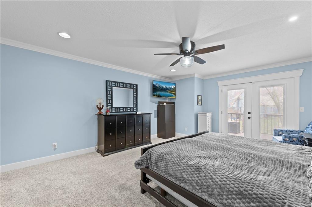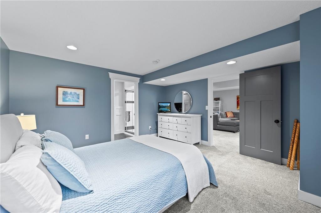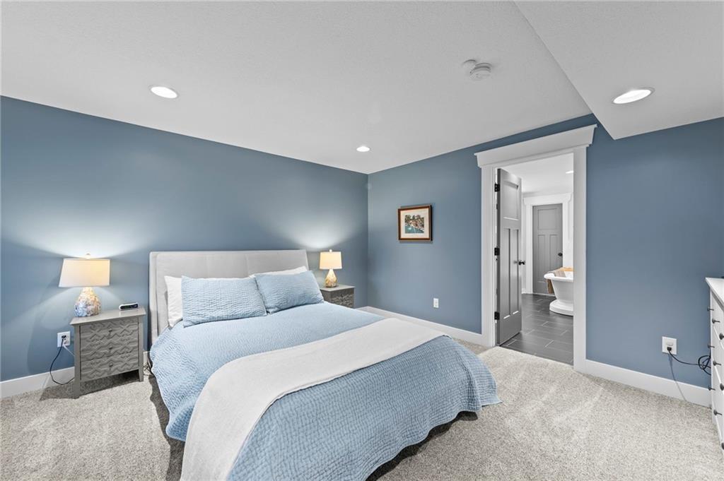 Welcome to 318 Lakeside Drive nestled just off the Liberty Triangle, this delightful neighborhood boasts lush trees, serene ponds, a park like setting, and maintenance free living! Very convenient for shopping, dining out and all your daily needs. This exceptional property is ready for new owners and features convenient main level living with an open floorpan, fully remodeled and professionally designed with designer touches everywhere! Modernized kitchen with the quartzite island and walnut table top with seating for eight perfect for entertaining all your guests. Upgraded newer kitchen appliances, farm sink, Blanco prep sink, custom cabinets with storage galore, soft close drawers and doors, and a floor to ceiling pantry. The kitchen opens up to the living room with a delightful gas fireplace. The owners suite is large and inviting and features updated bath with tiled walk in shower, double vanity and a walk in closet. This also opens to the outside deck. Perfect for those morning cups of coffee! There is also another bedroom off the front of the home with a large closet that could also double as an office/formal dining room as well. The second bath also features a nice skylight and an elegant tiled walk in shower. Main floor laundry and also a second deck off the kitchen perfect for the grill! The lower level features a second gas fireplace, large family room, and a third bedroom and ensuite bath perfect for guests. There is also an ample storage room with epoxy floor and more storage under the stairwell. The garage also has and epoxy floor and the decks are made of composite material. Newer high efficiency HVAC system installed. This is a must see! Call to schedule a tour today!