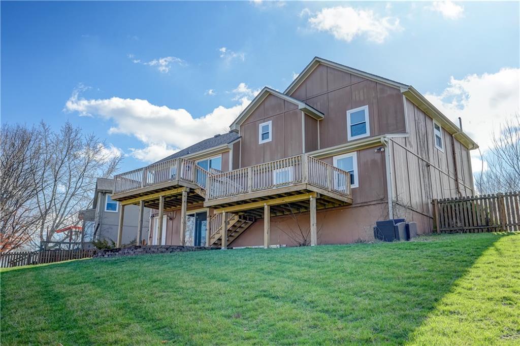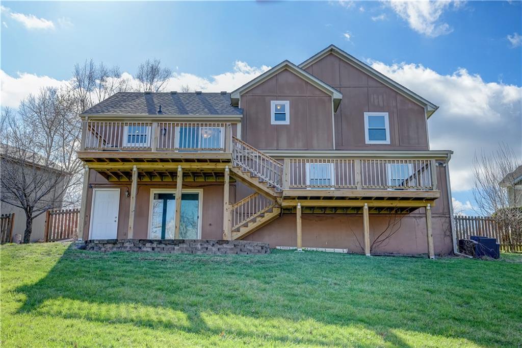 Welcome to 2501 NE Dale Hunter Trail! This 3 bedroom, 3 full bath home offers multiple living spaces and a layout that gives everyone room to spread out. Step inside from the covered front porch and you are greeted by soaring ceilings, a cozy fireplace, and a bay window that fills the main living area with natural light. The space flows comfortably into the dining area and kitchen. The kitchen features ceramic tile floors, stainless steel appliances that stay with the home, and sliding door access to the two tiered deck. Upstairs you will find all three bedrooms, including the primary suite with an en suite bathroom featuring double vanities and two closets. The hall bathroom is spacious and includes the laundry area conveniently tucked inside. Just a few steps down is the second living area with large windows that bring in great natural light. It works well as a family room, office space, or flexible living area depending on your needs. The lowest level offers a walkout basement with a third full bathroom, a third living area, and additional unfinished storage space. Outdoor living is just as enjoyable with a two tiered deck, patio space, and a large yard that backs to green space with no immediate neighbor behind you. All of this is tucked into a quiet cul de sac lot. If you have been looking for a home with space, flexibility, and a great Lee’s Summit location, this one is worth a look.