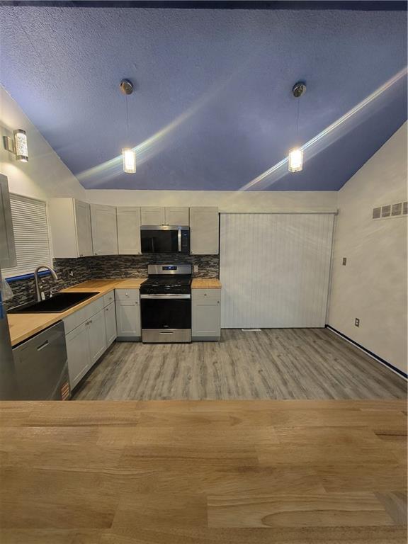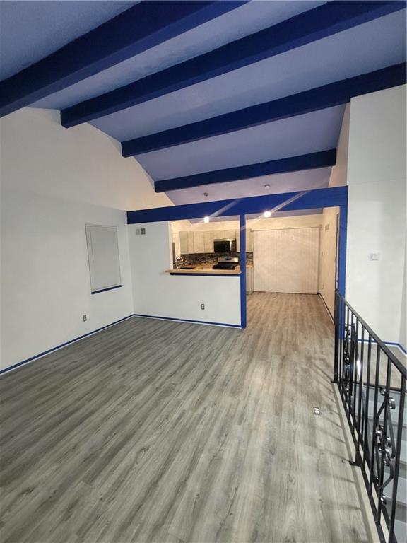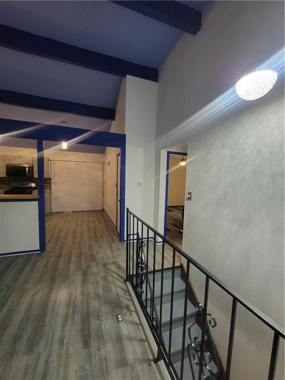 Beautifully updated townhouse featuring vaulted ceilings with exposed beams and an open contemporary layout. The spacious living area includes a modern fireplace and updated low voltage lighting and flooring,creating a warm and inviting space. Recent updates include fresh finishes a,new appliances cabinets and countertops, and upgraded flooring throughout. Enjoy outdoor living with a private deck with additional storage space below. Convenient location close to shopping,dining,the stadiums, and major highways. Move-in ready and a great opportunity for comfortable low maintenance living. Another quality CASAKING renovation.