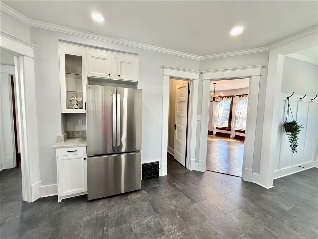 Step into this stunning nearly 3,000 sq. ft. four-bedroom home where timeless character meets thoughtful updates. From the moment you enter, you’ll notice the beyond-amazing hardwood floors and intricate original woodwork that make this home truly one of a kind. This historic home has been lovingly brought back to life so you can enjoy its remarkable craftsmanship and charm. The completely redesigned kitchen features new cabinetry, countertops, flooring, a spacious walk-in pantry, and brand-new appliances that all stay with the home. The main floor offers exceptional living space including a large family room, formal dining room, living room, and a beautiful foyer highlighted by detailed trim and architectural character. Two staircases lead to the second level, adding both convenience and historic charm. All rooms freshly painted. Upstairs you’ll find four large bedrooms, including two with an enormous walk-in closet, plus the laundry room conveniently located near the bedrooms. The updated full bathroom has been thoughtfully renovated while preserving the history and integrity. The fully finished attic provides incredible flexibility and can serve as an additional bedroom, office, game room, craft space, or playroom. This home is filled with character, space, and unique features you simply don’t find in modern homes. Don’t miss the opportunity to own this beautifully restored piece of history.