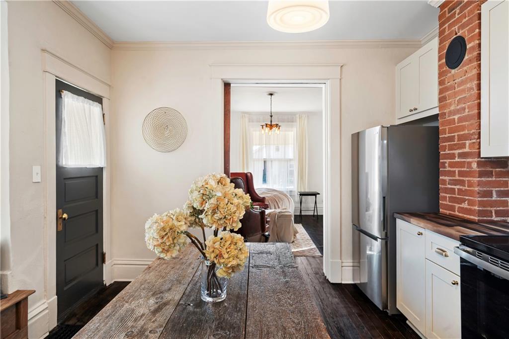 Ideally located one block from the highly anticipated Historic NE Lofts, a multi-million-dollar development set to elevate the entire district. Sumptuous finishes define this beautifully renovated circa 1890 home. It offers a classic blend of historic charm and smart updates, with restored vintage elements and modern features throughout. Love the original staircase, fireplace, and rich wood floors. The thoughtfully executed redesign is an entertainers dream, with a spacious main level and seamless outdoor connection. The new custom kitchen is absolutely gorgeous featuring butcher block counters, abundant cabinetry, and a full appliance suite. Tucked neatly behind the kitchen is a vestibule with additional storage, laundry, and a darling powder room. Baths are custom designed with high style and function. The bedrooms are of generous proportion, including a main-level ensuite. Outdoor living shines with a huge wrap-around porch and generous backyard beneath a mature tree canopy. This timeless and inviting urban oasis sits just minutes from downtown and steps from essential amenities, with a walk score of 73. Updated roof, electric, plumbing, thermal windows and HVAC. This home is everything you need and nothing you don't.