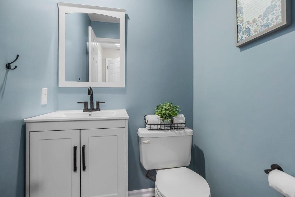 Move-in ready with space to live, entertain, and relax! The main level welcomes you with a formal living room and beautiful luxury vinyl plank flooring flowing throughout the main living areas. The kitchen is a standout with its vaulted ceiling, TONS of cabinets, and center island with quartz counter—perfect for everything from quick breakfasts to hosting friends. Downstairs, the cozy family room features a zero-emission gas log fireplace and convenient half bath, making it an ideal hangout space for movie nights or game days. The spacious primary suite offers a relaxing retreat with a walk-in shower, walk-in closet, and soaker tub. Two additional bedrooms include large closets and share a well-appointed hall bath with tile flooring and a shower-over-tub. Need more space? The finished basement includes a rec room with a walkout to the backyard—perfect for a 4th bedroom, office, or rec room. Step outside to enjoy the large deck and backyard, ideal for entertaining or relaxing on warm evenings. Nestled on a quiet cul-de-sac! The home also features durable Hardi-plank siding, and residents get to enjoy the neighborhood swimming pool—just in time for summer.