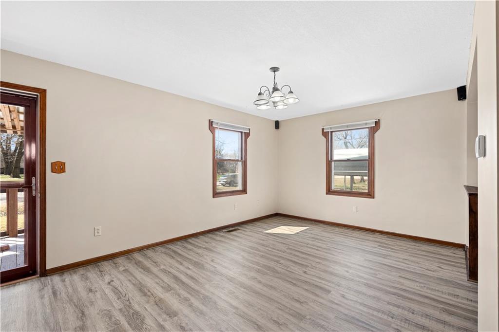 This well maintained 2 bedroom, 1 bathroom home, built in 1995, offers comfortable living with thoughtful updates throughout. Inside, you’ll find new luxury vinyl plank flooring and fresh interior paint that give the home a clean, updated feel, while wood trim throughout adds warmth and character to the living spaces. A durable metal roof provides long term value and low maintenance. The kitchen offers generous cabinet and countertop space, a tile backsplash, and includes the refrigerator and range with the sale. The layout flows easily into the living and dining areas, creating a functional space with plenty of natural light. The bathroom features tiled walls with decorative accents, a large vanity, and a tub and shower combination. Step outside and enjoy the screened in front porch, a great spot to relax and unwind. The fenced yard provides space for pets, gardening, or outdoor activities. Additional features include a detached garage, covered carport area, and convenient rear alley access for additional parking and easy entry to the property. The manageable size and practical layout make this property well suited for a variety of living needs. With recent interior updates and durable exterior features, this home offers a move in ready opportunity in Rich Hill, Missouri.