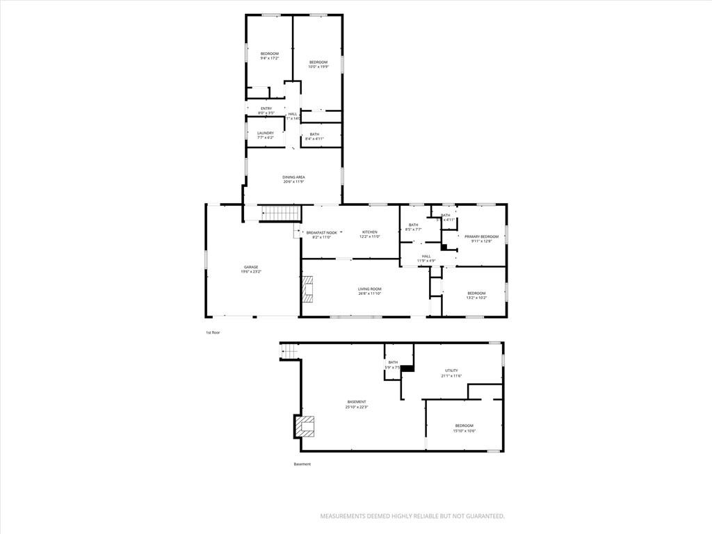 Big ranch with a basement in Grandview. 4 bedrooms on the main level plus a 5th nonconforming bedroom in the lower level. Large sized lot, with cute flower beds that will come alive this spring. Fenced yard with a playset, covered deck, and a shed for storage. Inside you will find it freshly painted throughout, refinshed hardwoods on the front side of the home, new doors and light fixtures. Kitchen with stainless steel appliances LVT flooring. Large dining room space on the back side or can be used as a secondary living room. Dedicated Main level Laundry/ Utility room. Downstairs has another living room with a fireplace, nonconforming 5th bedroom, and a 3rd full bath- plus a storage room. Dual zoned HVAC units and zoned water heaters. If you need a larger ranch with lots of space, this is the one!