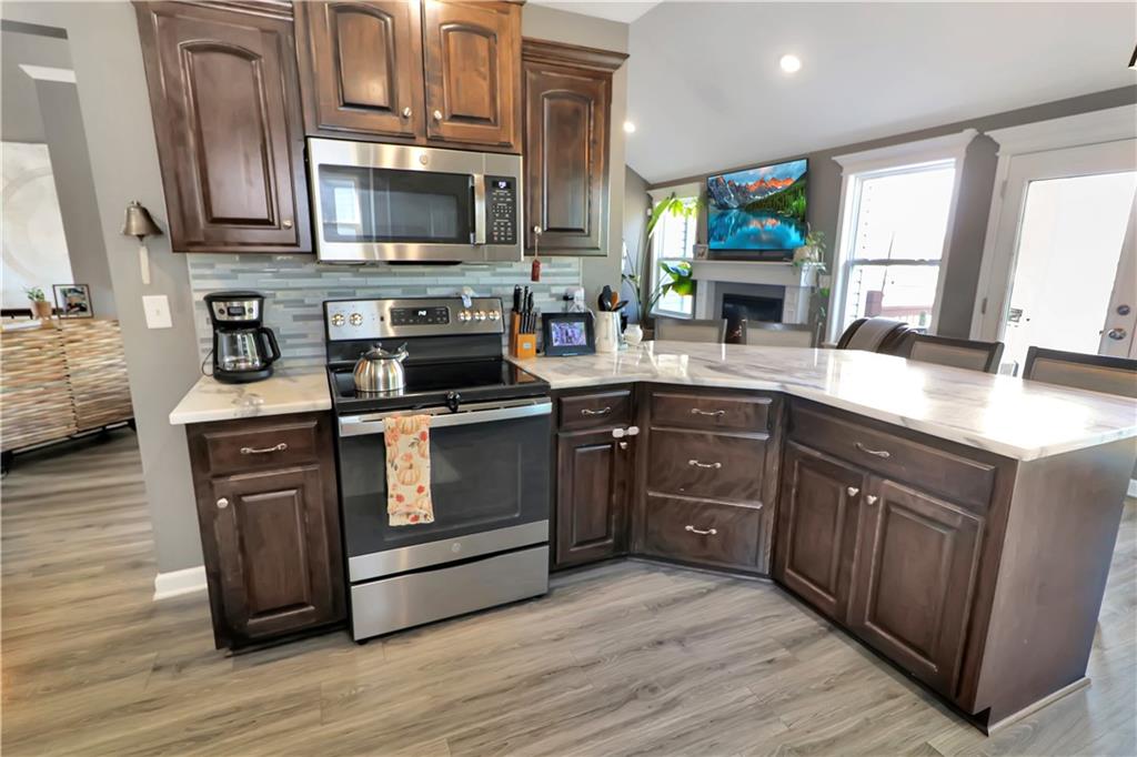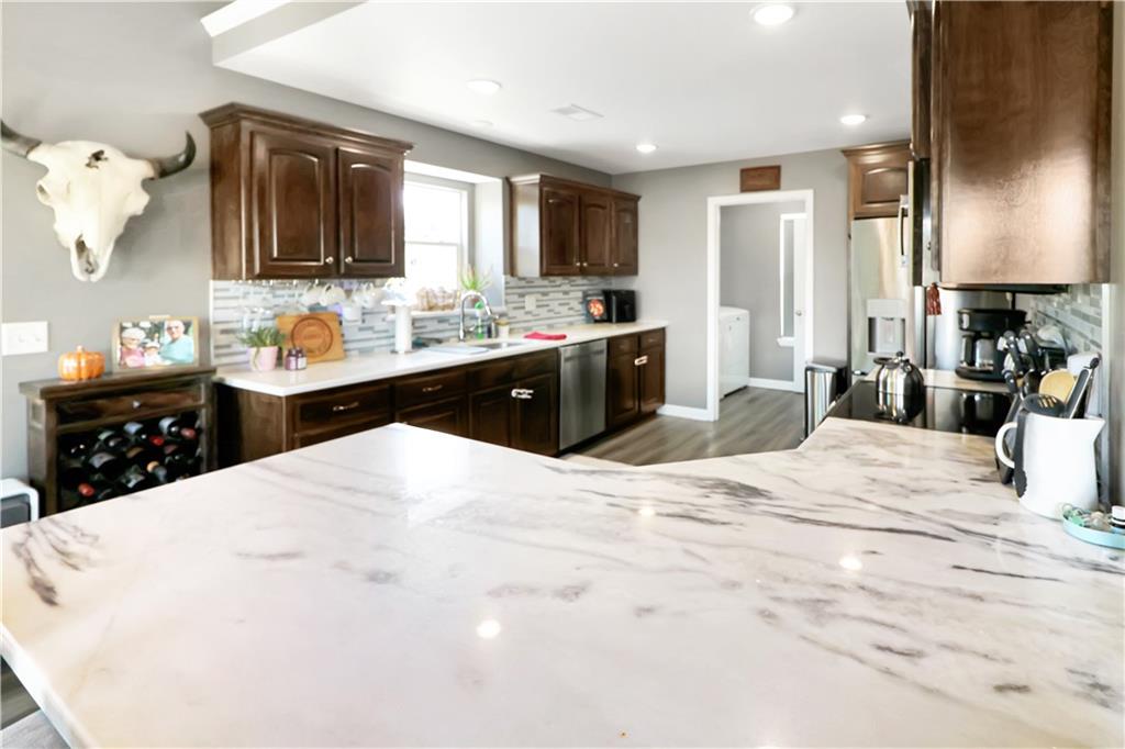 BUILT IN 2022 !!!!! NEW-ish raised ranch floorplan on a large corner lot in the perfectly located Hawthorne neighborhood of Warrensburg. Backing up to green space, this home is ideal for bird watching and peaceful mornings. The main level features three bedrooms - one of which has a very nice ensuite setup. The living room is adjacent to a smaller dining area as well as a very spacious kitchen (richly stained wood cabinets, gorgeous white marble countertops....) and an attached laundry & pantry area! The lower level has a full bathroom, bar, recreational area, walkout door to the backyard. The garage is large, huge yard, long driveway, green space behind the home.... this is a fantastic home and you will want to look at it before it's gone!--