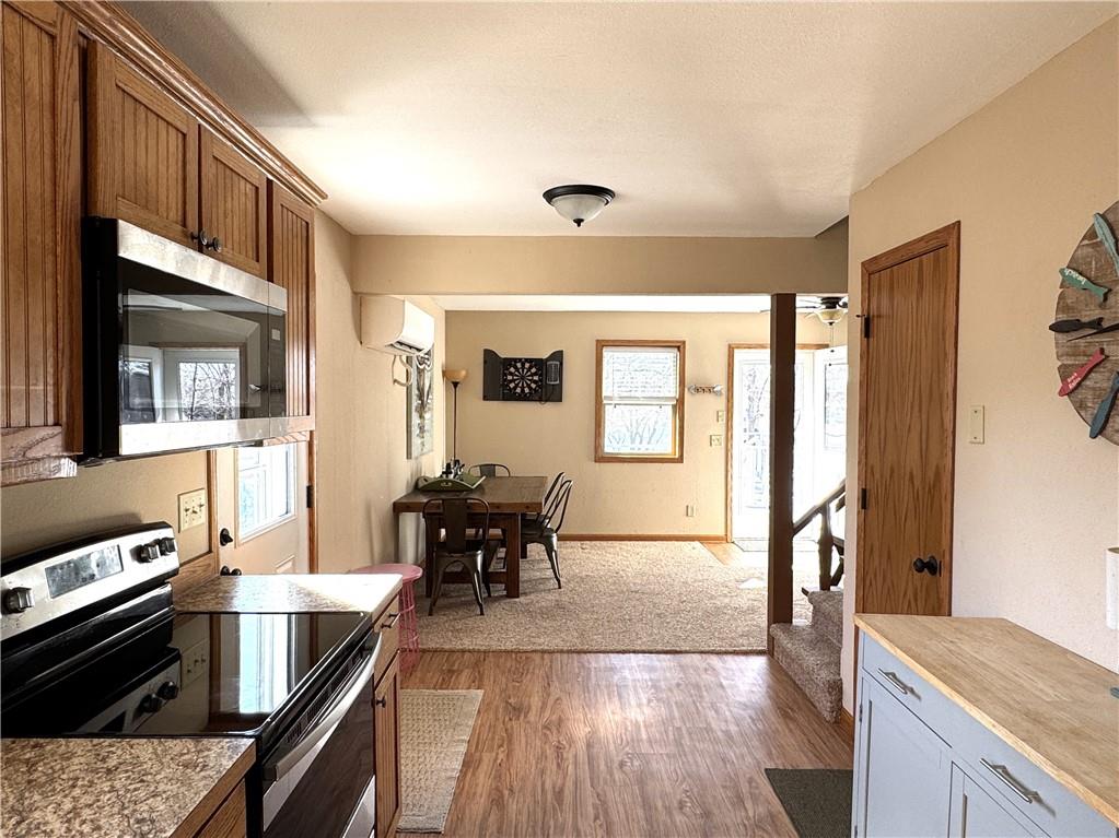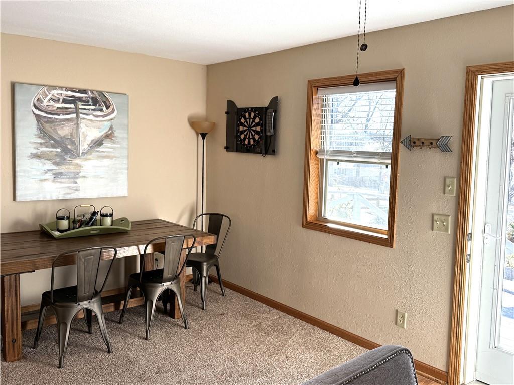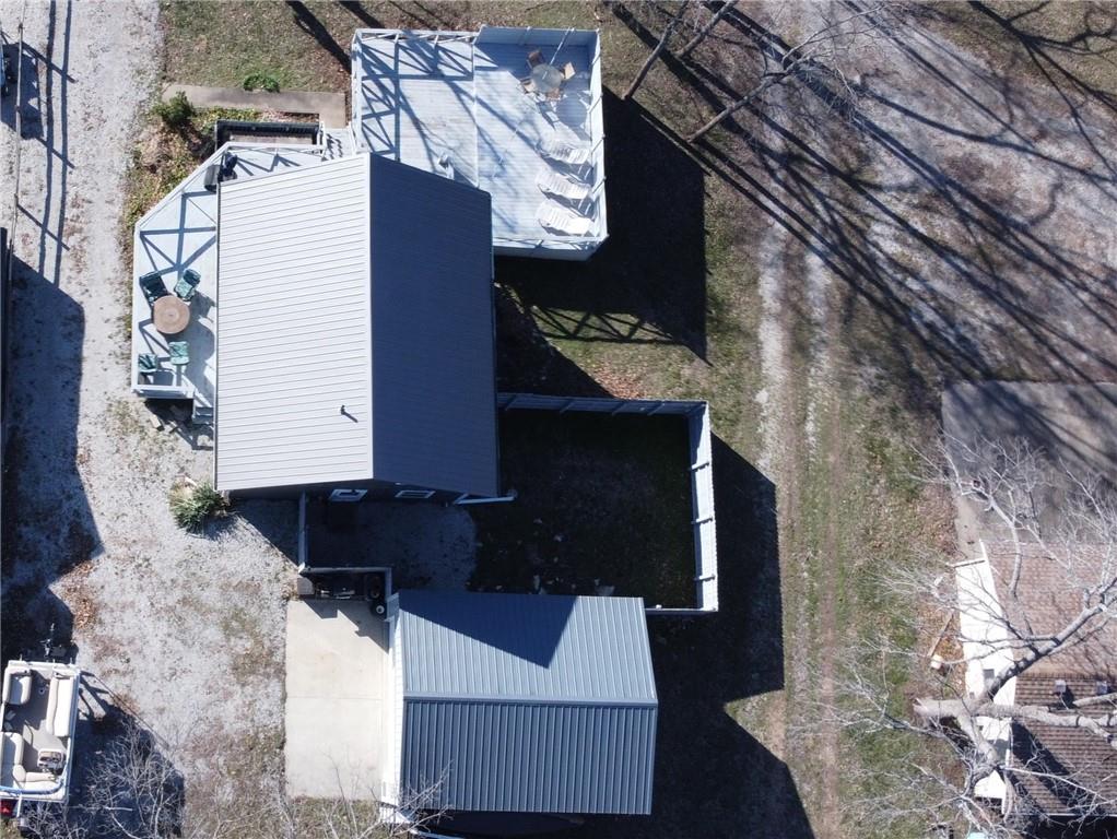 Enjoy lake views with this 1st tier property in Linn Valley Lakes. Plenty of outdoor living space with the enormous deck! A top to bottom rehab was completed in 2019 and the home still looks fresh and new. An oversized 24 x 20 garage with concrete floors and electricity is tucked behind the home! Open floorplan on the main floor has lots of sunlight and great views towards trees and the main lake. There is one bedroom and a bathroom on the main floor. Upstairs, the Primary bedroom is huge and has a private martini deck with views of the lake. A 3rd bedroom, 2nd full bath and a bonus loft area are also located on the 2nd floor. The fenced back yard provides a nice area for pets. This great property is located on a paved road and is connected to public sewer and water lines. The clubhouse, pool and sand beach are a 1/2 block away and the boat ramp for launching your boat or jet ski is just down the street.