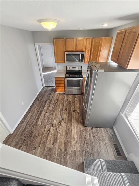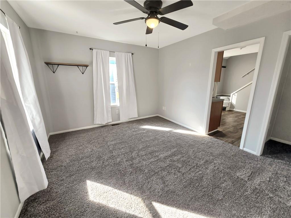 Charming 1.5-story home located just minutes from downtown Warrensburg! This inviting home offers 3 bedrooms and 1.5 bathrooms with a unique and functional layout. The main floor features two bedrooms and a full bathroom, while the third bedroom is an upstairs loft with its own private half bath, providing a comfortable and private space that works well as a primary bedroom, guest room, or office. Inside, the home features new carpet and living room curtains and has been professionally cleaned—making it completely move-in ready. Relax and unwind on the screened front porch, perfect for lounge furniture and cozy gatherings. The privacy-fenced backyard includes a firepit, creating a great space for outdoor entertaining or quiet evenings. Additional features include an enclosed back porch ideal for utility use or extra storage, as well as a spacious unfinished basement with washer and dryer included, offering plenty of additional storage space. Tenants will also enjoy access to four off-street parking spaces located adjacent to the backyard, making parking convenient for multiple vehicles or guests. Conveniently located near downtown shopping, dining, and amenities in Warrensburg. No pets allowed.