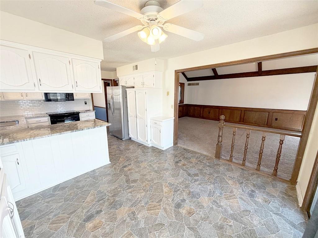 JUST LISTED.. GOING GOING GONE! Open spacious floor plan with oversized entry. Soaring vault in Living room with Masonry fireplace and opens to breakfast area. Formal dining just off kitchen. Kitchen just redone with granite countertops. Builtin Butler station in Breakfast room that walks out to maintenance free 18x11 deck with patio as well. Storage shed. Lot is HUGE and fenced. Oversized 27'x25' garage. Finished lower level has built-in huge desk and wood burning stove. More siting type area and a 4th almost conforming bedroom. Master bedroom is oversized with large walkin closet and private bath