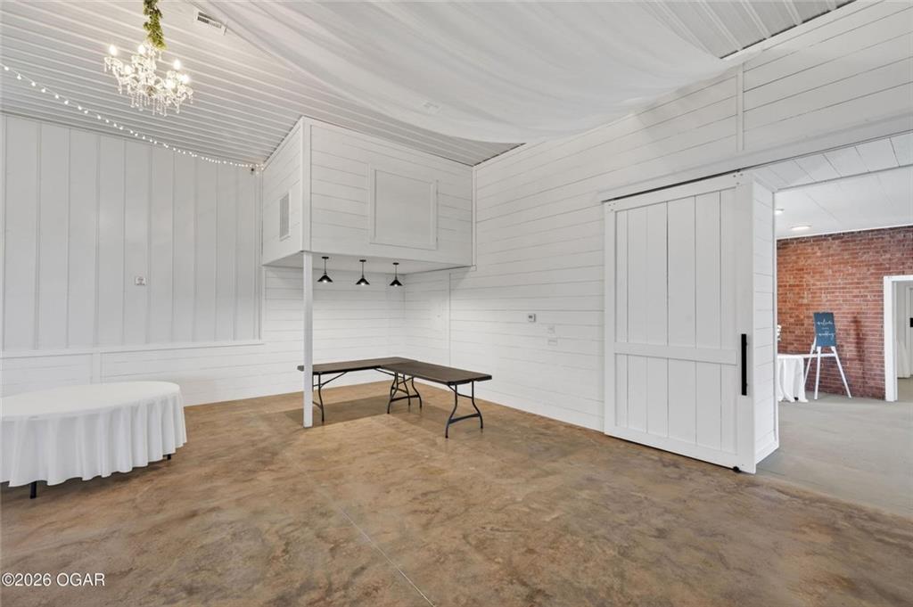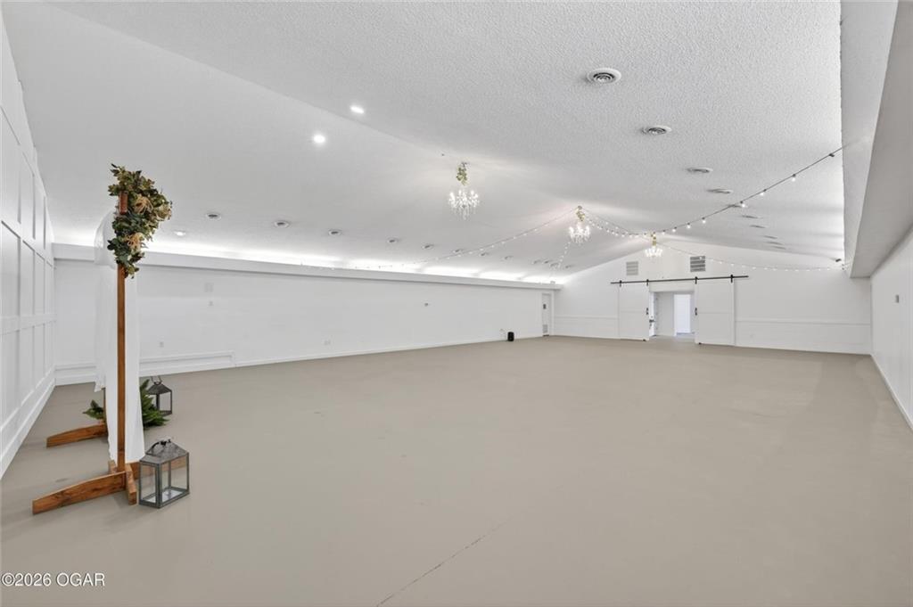 Strategically located near Interstate 44 and the Joplin medical corridor, this highly versatile commercial property offers an exceptional opportunity for investors or owner-users seeking scale, accessibility, and adaptive reuse potential. The building features approximately 7,318 square feet with a functional layout that supports a wide range of business models including medical, professional, event, educational, or institutional use. The interior configuration includes large open areas, multiple private rooms or suites, restroom facilities, and a kitchen/breakroom component -- providing immediate usability with minimal reconfiguration required for many operations. The property's proximity to major healthcare facilities makes it particularly attractive for medical offices, outpatient services, therapy providers, or medical storage / equipment users, while interstate access enhances regional convenience for clients, staff, and logistics. This offering presents a rare combination of size, flexibility, and location efficiency in one of Joplin's most commercially desirable growth areas. Buyer to independently verify zoning, permitted uses, and any applicable municipal ordinances.
