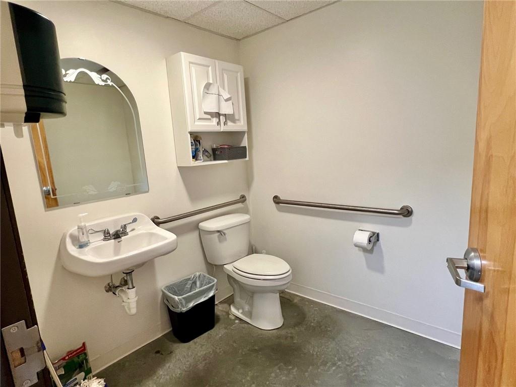 This young building is steel clear-span with painted steel roof and siding. 50 X 80 with 10 ft. sidewalls with two 12X14 overhead doors you can drive completely through. Refer to aerial photo in supplements to visualize 8 angle parking spots along the west side of the building and large concrete apron behind the building adjoining well-traveled alley. Concrete parking in front of building also. 15X50 foot of office space with 2 baths, central air and 2 man doors. Originally built for a glass company, the concrete is in great condition, exterior appears brand new and office space was completed in last few years. High visibility location one-half block off main 4-way stop downtown.